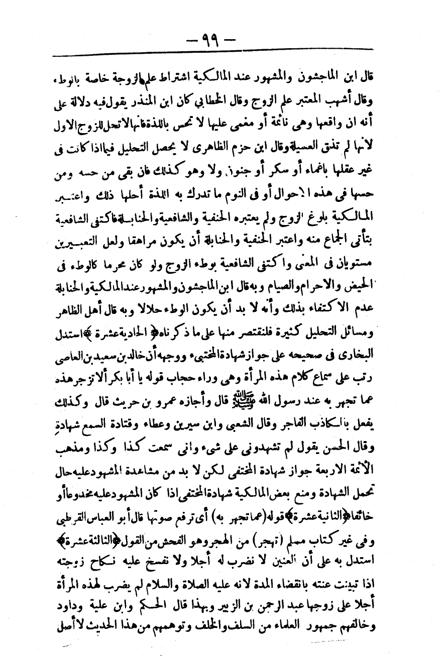 وَالْمَشْهُورُ عِنْدَ الْمَالِكِيَّةِ وَالْحَنَابِلَةِ عَدَمُ الِاكْتِفَاءِ بِذَلِكَ، وَأَنَّهُ لَا بُدَّ أَنْ يَكُونَ الْوَطْءُ حَلَالًا، وَبِهِ قَالَ أَهْلُ الظَّاهِرِ، وَمَسَائِلُ التَّحْلِيلِ كَثِيرَةٌ فَلْنَقْتَصِرْ مِنْهَا عَلَى مَا ذَكَرْنَاهُ.