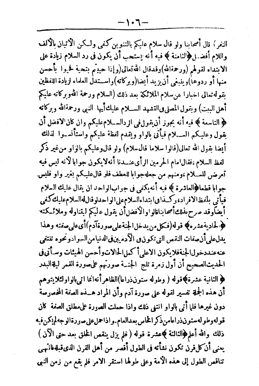 ـــــــــــــــــــــــــــــQالنَّفَرِ:» قَالَ أَصْحَابُنَا وَلَوْ قَالَ سَلَامٌ عَلَيْكُمْ بِالتَّنْوِينِ كَفَى وَلَكِنَّ الْإِتْيَانَ بِالْأَلِفِ وَاللَّامِ أَفْضَلُ.