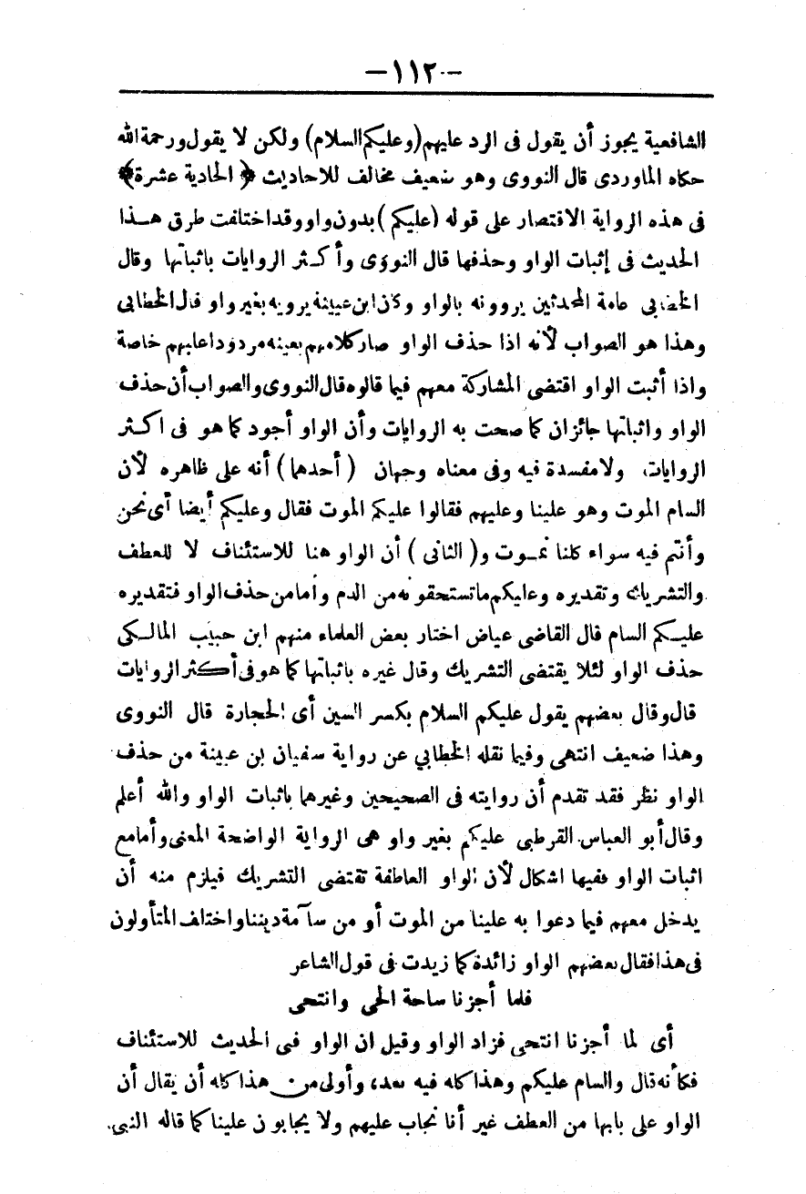 أَيْ لَمَّا أَجَزْنَا انْتَحَى فَزَادَ الْوَاوَ وَقِيلَ إنَّ الْوَاوَ فِي الْحَدِيثِ لِلِاسْتِئْنَافِ فَكَأَنَّهُ قَالَ: وَالسَّامُ عَلَيْكُمْ وَهَذَا كُلُّهُ فِيهِ بُعْدٌ، وَأَوْلَى مِنْ هَذَا كُلِّهِ أَنْ يُقَالَ إنَّ الْوَاوَ عَلَى بَابِهَا مِنْ الْعَطْفِ غَيْرَ أَنَّا نُجَابُ عَلَيْهِمْ وَلَا يُجَابُونَ عَلَيْنَا كَمَا قَالَهُ النَّبِيُّ