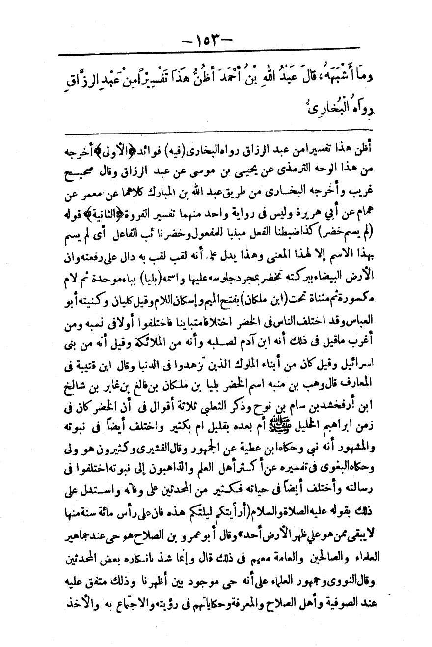 قَالَ عَبْدُ اللَّهِ بْنُ أَحْمَدَ أَظُنُّ هَذَا تَفْسِيرًا مِنْ عَبْدِ الرَّزَّاقِ رَوَاهُ الْبُخَارِيُّ.