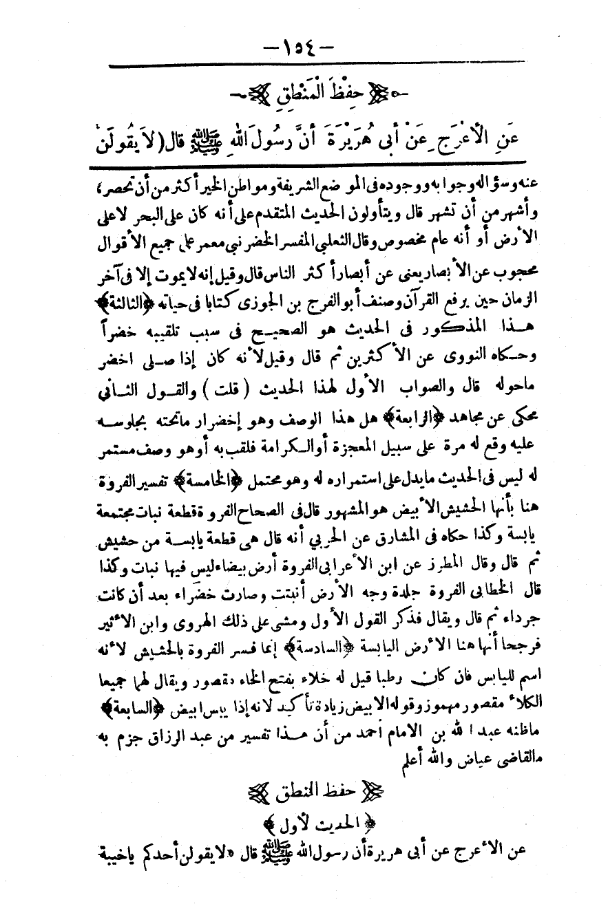 (حِفْظُ الْمَنْطِقِ) (الْحَدِيثُ الْأَوَّلُ) عَنْ الْأَعْرَجِ عَنْ أَبِي هُرَيْرَةَ أَنَّ رَسُولَ اللَّهِ - صَلَّى اللَّهُ عَلَيْهِ وَسَلَّمَ - قَالَ: «لَا يَقُولَنَّ أَحَدُكُمْ يَا خَيْبَةَ