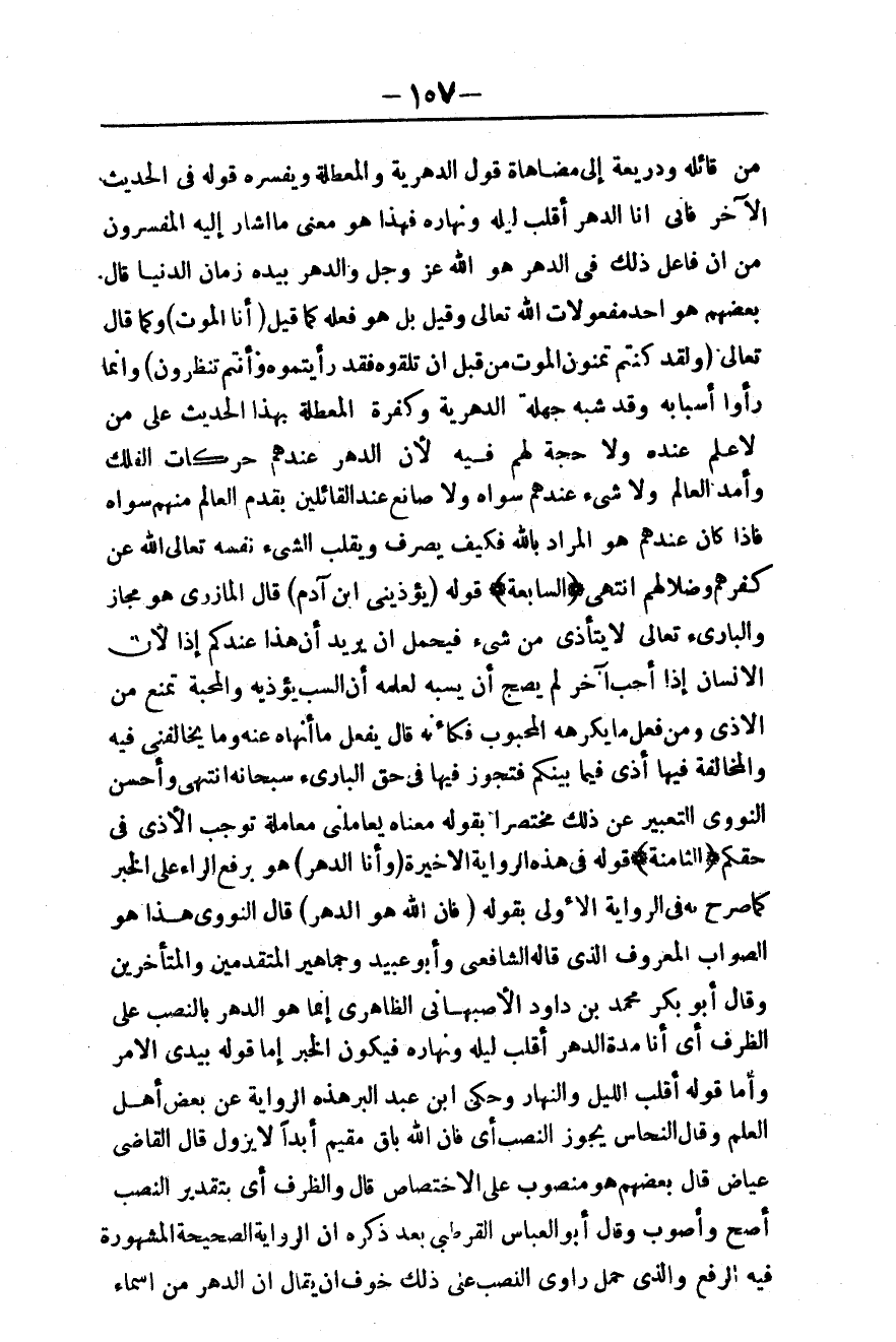 وَقَالَ أَبُو الْعَبَّاسِ الْقُرْطُبِيُّ بَعْدَ ذِكْرِهِ: إنَّ الرِّوَايَةَ الصَّحِيحَةَ الْمَشْهُورَةَ فِيهِ الرَّفْعُ، وَاَلَّذِي حَمَلَ رَاوِي النَّصْبِ عَلَى ذَلِكَ خَوْفَ أَنْ يُقَالَ إنَّ الدَّهْرَ مِنْ أَسْمَاءِ