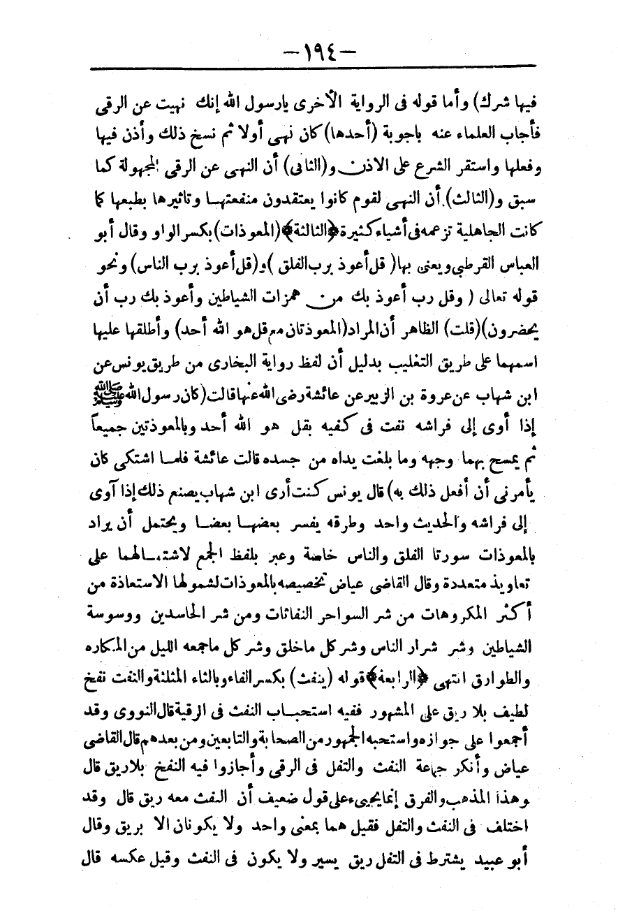 وَقَالَ الْقَاضِي عِيَاضٌ تَخْصِيصُهُ بِالْمُعَوِّذَاتِ لِشُمُولِهَا الِاسْتِعَاذَةَ مِنْ أَكْثَرِ الْمَكْرُوهَاتِ مِنْ شَرِّ السَّوَاحِرِ النَّفَّاثَاتِ وَمِنْ شَرِّ الْحَاسِدِينَ وَوَسْوَسَةِ الشَّيَاطِينِ وَشَرِّ شِرَارِ النَّاسِ وَشَرِّ كُلِّ مَا خَلَقَ وَشَرِّ كُلِّ مَا جَمَعَهُ اللَّيْلُ مِنْ الْمَكَارِهِ وَالطَّوَارِقِ انْتَهَى.