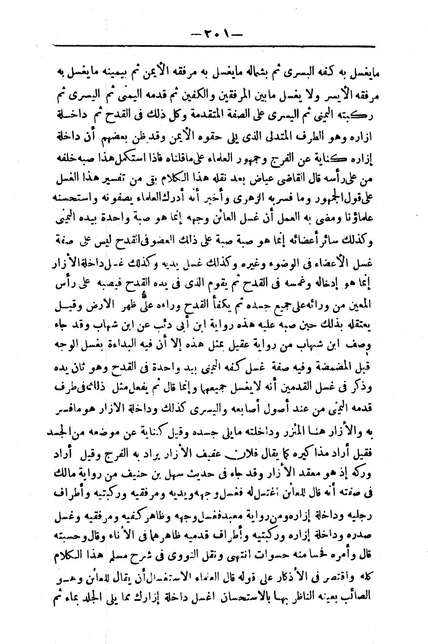 وَنَقَلَ النَّوَوِيُّ فِي شَرْحِ مُسْلِمٍ هَذَا الْكَلَامَ كُلَّهُ وَاقْتَصَرَ فِي الْأَذْكَارِ عَلَى قَوْلِهِ قَالَ الْعُلَمَاءُ الِاسْتِغْسَالُ أَنْ يُقَالَ لِلْعَائِنِ وَهُوَ الصَّائِبُ بِعَيْنِهِ النَّاظِرُ بِهَا بِالِاسْتِحْسَانِ اغْسِلْ دَاخِلَةَ إزَارِك مِمَّا يَلِي الْجِلْدَ بِمَاءٍ، ثُمَّ