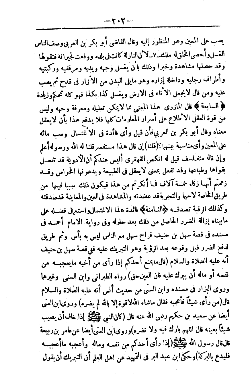 فَإِنْ قِيلَ: وَأَيُّ فَائِدَةٍ فِي الِاغْتِسَالِ وَصَبِّ مَائِهِ عَلَى الْمُعَيَّنِ وَأَيُّ مُنَاسَبَةٍ بَيْنَهُمَا؟ (قُلْنَا) إنْ قَالَ: هَذَا مُسْتَفْسَرٌ، قُلْنَا لَهُ: اللَّهُ وَرَسُولُهُ أَعْلَمُ، وَإِنْ قَالَهُ مُتَفَلْسِفٌ قِيلَ لَهُ انْكِصْ الْقَهْقَرَى أَلَيْسَ عِنْدَكُمْ أَنَّ الْأَدْوِيَةَ قَدْ تَفْعَلُ بِقُوَاهَا وَطِبَاعِهَا، وَقَدْ تَفْعَلُ بِمَعْنًى لَا يُعْقَلُ فِي الطَّبِيعَةِ وَيَدْعُونَهَا الْخَوَاصُّ، وَقَدْ زَعَمْتُمْ أَنَّهَا زُكَاءُ خَمْسَةِ آلَافٍ فَمَا أَنْكَرْتُمْ مِنْ هَذَا فَيَكُونُ ذَلِكَ سَبَبًا فِيهَا مِنْ طَرِيقِ الْخَاصَّةِ لَا سِيَّمَا وَالتَّجْرِبَةُ قَدْ عَضَّدَتْهُ، وَالْمُشَاهَدَةُ فِي الْعَيْنِ وَالْمُعَايَنَةُ قَدْ صَدَّقَتْهُ، وَكَذَلِكَ الرُّقْيَةُ تُصَدِّقُهُ.