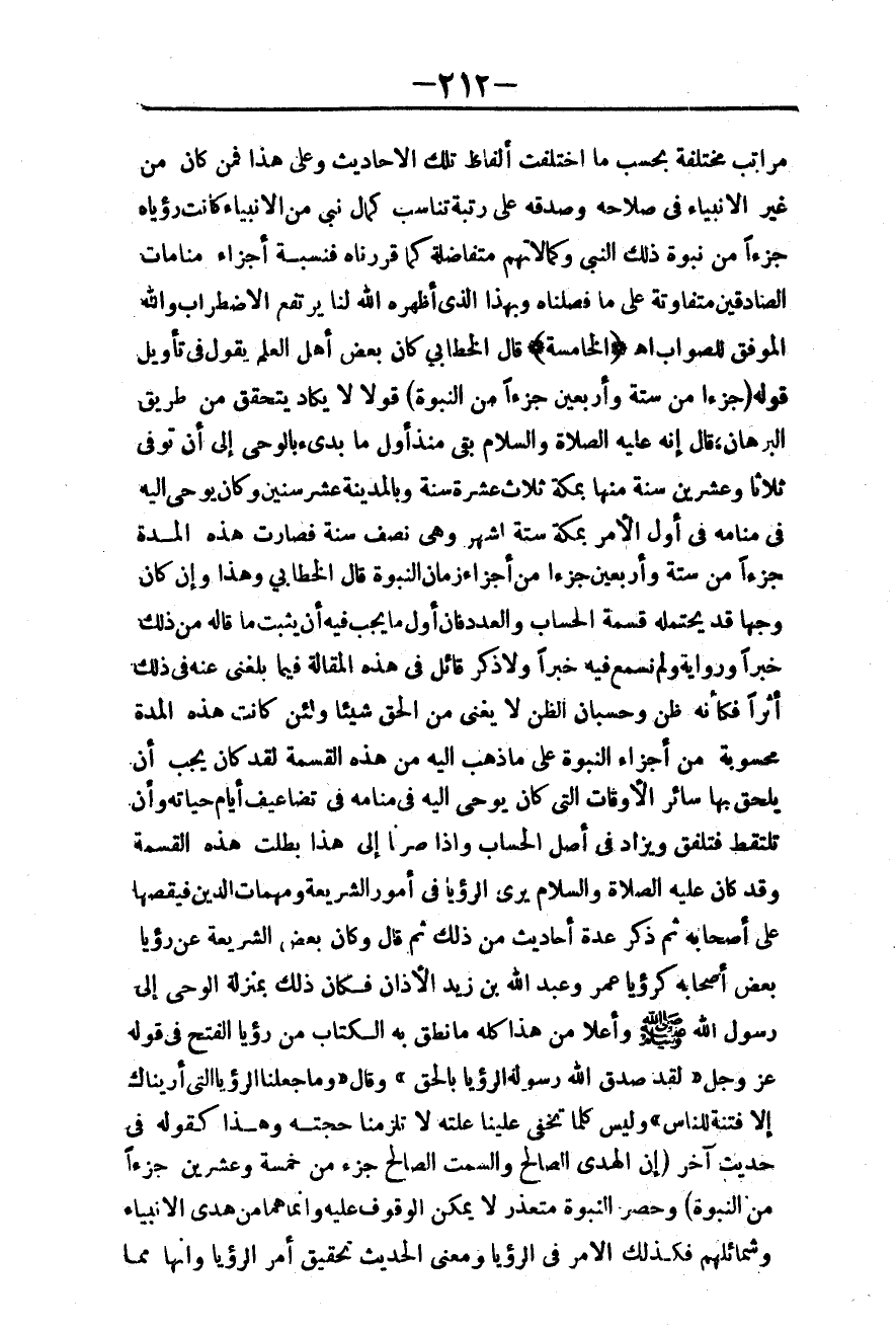 ـــــــــــــــــــــــــــــQمَرَاتِبُ مُخْتَلِفَةٌ بِحَسَبِ مَا اخْتَلَفَتْ أَلْفَاظُ تِلْكَ الْأَحَادِيثِ وَعَلَى هَذَا فَمَنْ كَانَ مِنْ غَيْرِ الْأَنْبِيَاءِ فِي صَلَاحِهِ وَصِدْقِهِ عَلَى رُتْبَةٍ تُنَاسَبُ كَمَالَ نَبِيٍّ مِنْ الْأَنْبِيَاءِ كَانَتْ رُؤْيَاهُ جُزْءًا مِنْ نُبُوَّةِ ذَلِكَ النَّبِيِّ وَكِمَالَاتُهُمْ مُتَفَاضِلَةٌ كَمَا قَرَّرْنَاهُ فَنِسْبَةُ أَجْزَاءِ مَنَامَاتِ الصَّادِقِينَ مُتَفَاوِتَةٌ عَلَى مَا فَصَّلْنَاهُ وَبِهَذَا الَّذِي أَظْهَرَهُ اللَّهُ لَنَا يَرْتَفِعُ الِاضْطِرَابُ وَاَللَّهُ الْمُوَفِّقُ لِلصَّوَابِ اهـ.