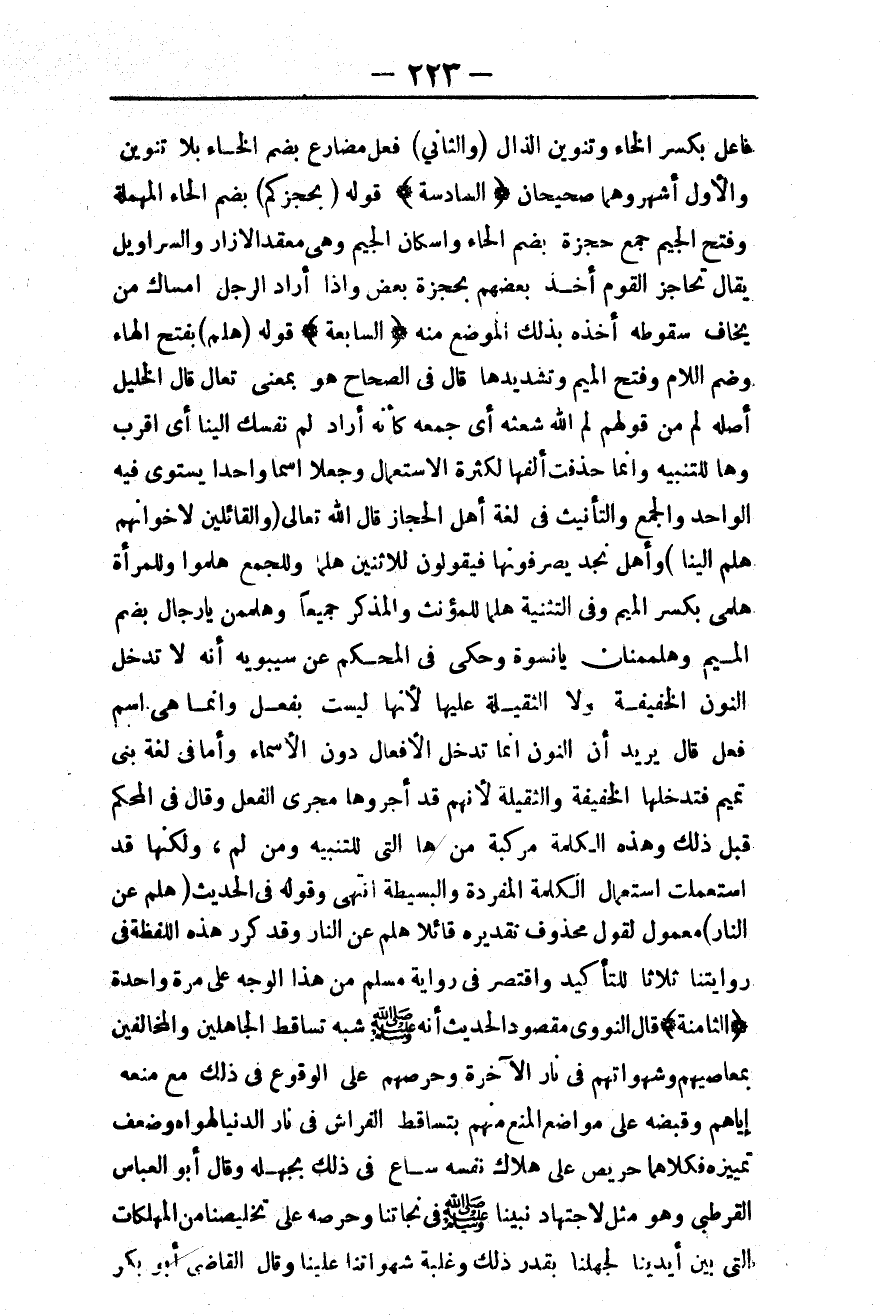 وَقَوْلُهُ فِي الْحَدِيثِ «هَلُمَّ عَنْ النَّارِ» مَعْمُولٌ لِقَوْلٍ مَحْذُوفٍ تَقْدِيرُهُ قَائِلًا هَلُمَّ عَنْ النَّارِ، وَقَدْ كَرَّرَ هَذِهِ اللَّفْظَةَ فِي رِوَايَتِنَا ثَلَاثًا لِلتَّأْكِيدِ وَاقْتَصَرَ فِي رِوَايَةِ مُسْلِمٍ مِنْ هَذَا الْوَجْهِ عَلَى مَرَّةٍ وَاحِدَةٍ.