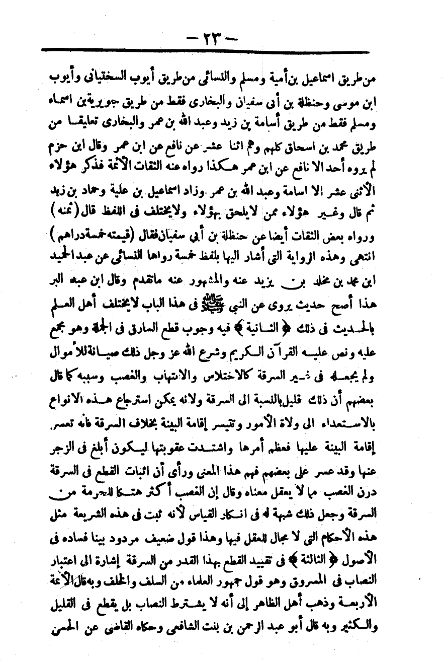 (الثَّالِثَةُ) : فِي تَقْيِيدِ الْقَطْعِ بِهَذَا الْقَدْرِ مِنْ السَّرِقَةِ إشَارَةٌ إلَى اعْتِبَارِ النِّصَابِ فِي الْمَسْرُوقِ وَهُوَ قَوْلُ جُمْهُورِ الْعُلَمَاءِ مِنْ السَّلَفِ وَالْخَلَفِ وَبِهِ قَالَ الْأَئِمَّةُ الْأَرْبَعَةُ وَذَهَبَ أَهْلُ الظَّاهِرِ إلَى أَنَّهُ لَا يُشْتَرَطُ النِّصَابُ بَلْ يُقْطَعُ فِي الْقَلِيلِ وَالْكَثِيرِ وَبِهِ قَالَ أَبُو عَبْدِ الرَّحْمَنِ ابْنُ بِنْتِ الشَّافِعِيِّ وَحَكَاهُ الْقَاضِي عَنْ الْحَسَنِ الْبَصْرِيِّ