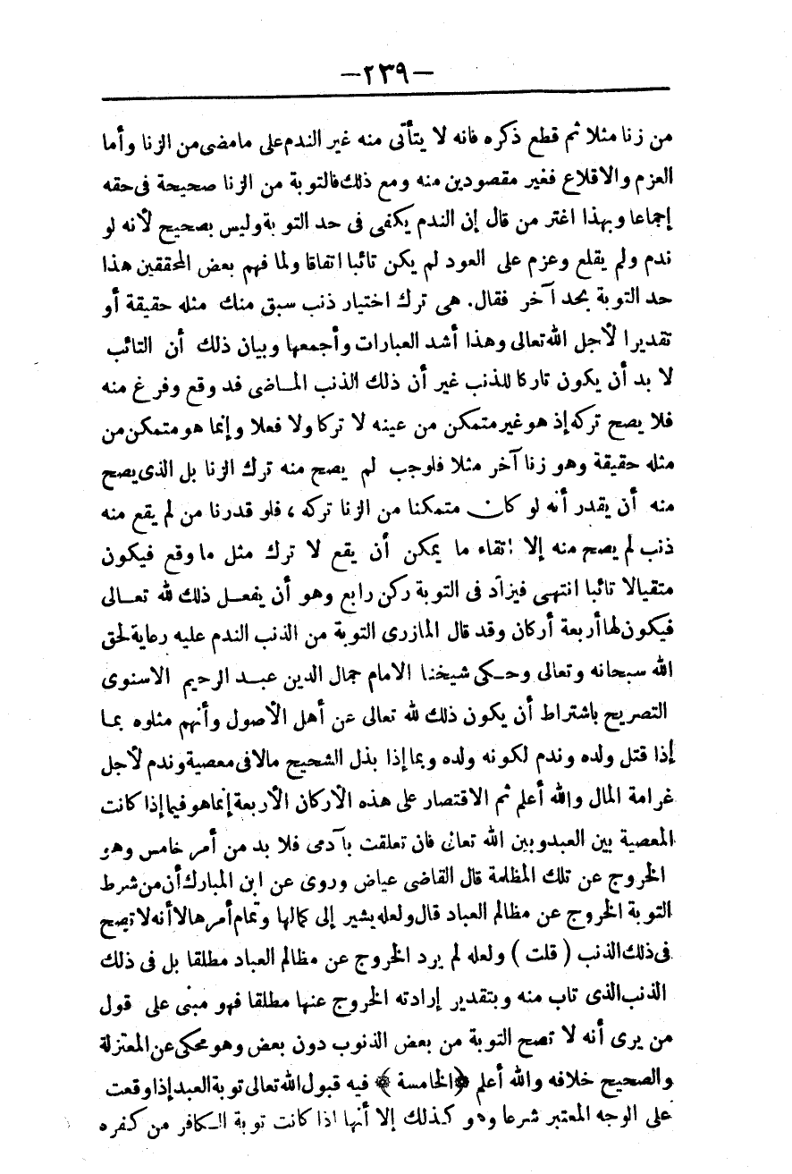 فَيُزَادُ فِي التَّوْبَةِ رُكْنٌ رَابِعٌ، وَهُوَ أَنْ يَفْعَلَ ذَلِكَ لِلَّهِ تَعَالَى فَيَكُونُ لَهَا أَرْبَعَةُ أَرْكَانٍ، وَقَدْ قَالَ الْمَازِرِيُّ التَّوْبَةُ مِنْ الذَّنْبِ النَّدَمُ عَلَيْهِ رِعَايَةً لَحِقَ اللَّهِ سُبْحَانَهُ وَتَعَالَى وَحَكَى شَيْخُنَا الْإِمَامُ جَمَالُ الدِّينِ عَبْدُ الرَّحِيمِ الْإِسْنَوِيُّ التَّصْرِيحَ بِاشْتِرَاطِ أَنْ يَكُونَ ذَلِكَ لِلَّهِ تَعَالَى عَنْ أَهْلِ الْأُصُولِ وَأَنَّهُمْ مَثَّلُوهُ بِمَا إذَا قَتَلَ وَلَدَهُ وَنَدِمَ لِكَوْنِهِ وَلَدَهُ وَبِمَا إذَا بَذَلَ الشَّحِيحُ مَالًا فِي مَعْصِيَةٍ وَنَدِمَ لِأَجَلِ غَرَامَةِ الْمَالِ وَاَللَّهُ أَعْلَمُ، ثُمَّ الِاقْتِصَارُ عَلَى هَذِهِ الْأَرْكَانِ الْأَرْبَعَةِ إنَّمَا هُوَ فِيمَا إذَا كَانَتْ الْمَعْصِيَةُ بَيْنَ الْعَبْدِ وَبَيْنَ اللَّهِ تَعَالَى فَإِنْ تَعَلَّقَتْ بِآدَمِيٍّ فَلَا بُدَّ مِنْ أَمْرٍ خَامِسٍ، وَهُوَ الْخُرُوجُ عَنْ تِلْكَ الْمَظْلِمَة قَالَ الْقَاضِي عِيَاضٌ وَرُوِيَ عَنْ ابْنِ الْمُبَارَكِ أَنَّ مِنْ شَرْطِ التَّوْبَةِ الْخُرُوجُ عَنْ مَظَالِمِ الْعِبَادِ قَالَ وَلَعَلَّهُ يُشِيرُ إلَى كَمَالِهَا وَتَمَامِ أَمْرِهَا لَا أَنَّهُ لَا تَصِحُّ فِي ذَلِكَ الذَّنْبِ (قُلْتُ) وَلَعَلَّهُ لَمْ يُرِدْ الْخُرُوجَ عَنْ مَظَالِمِ الْعِبَادِ مُطْلَقًا بَلْ فِي ذَلِكَ الذَّنْبِ الَّذِي تَابَ مِنْهُ وَبِتَقْدِيرِ إرَادَتِهِ الْخُرُوجَ عَنْهَا مُطْلَقًا فَهُوَ مَبْنِيٌّ عَلَى قَوْلِ مَنْ يَرَى أَنَّهُ لَا تَصِحُّ التَّوْبَةُ مِنْ بَعْضِ الذُّنُوبِ دُونَ بَعْضٍ، وَهُوَ مَحْكِيٌّ عَنْ الْمُعْتَزِلَةِ وَالصَّحِيحُ خِلَافُهُ وَاَللَّهُ أَعْلَمُ.
