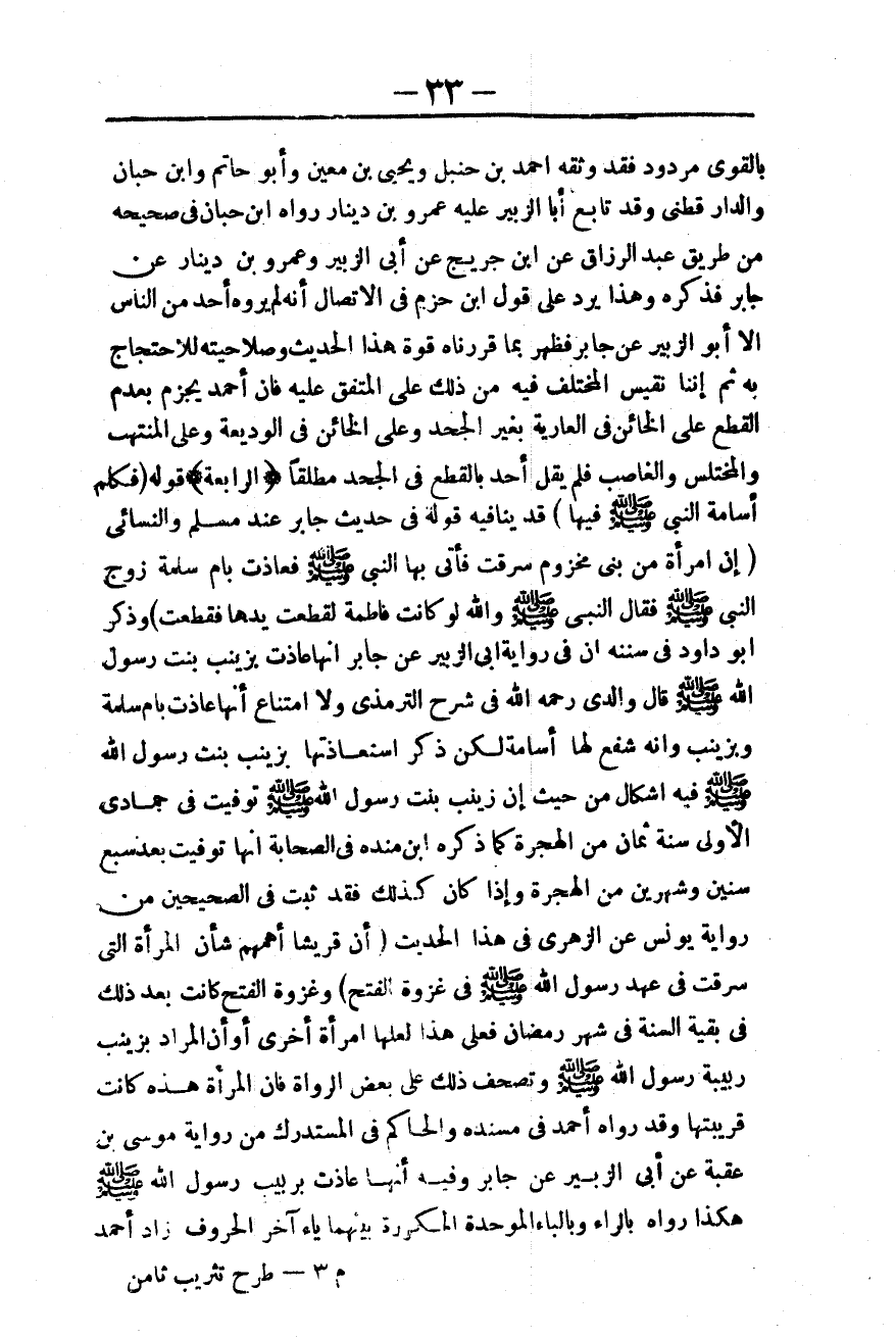 ـــــــــــــــــــــــــــــQبِالْقَوِيِّ مَرْدُودٌ فَقَدْ وَثَّقَهُ أَحْمَدُ بْنُ حَنْبَلٍ وَيَحْيَى بْنُ مَعِينٍ وَأَبُو حَاتِمٍ وَابْنُ حِبَّانَ وَالدَّارَقُطْنِيّ وَقَدْ تَابَعَ أَبَا الزُّبَيْرِ عَلَيْهِ عَمْرُو بْنُ دِينَارٍ رَوَاهُ ابْنُ حِبَّانَ فِي صَحِيحِهِ مِنْ طَرِيقِ عَبْدِ الرَّزَّاقِ عَنْ ابْنِ جُرَيْجٍ عَنْ أَبِي الزُّبَيْرِ وَعَمْرِو بْنِ دِينَارٍ عَنْ جَابِرٍ فَذَكَرَهُ وَهَذَا يَرُدُّ عَلَى قَوْلِ ابْنِ حَزْمٍ فِي الِاتِّصَالِ أَنَّهُ لَمْ يَرْوِهِ أَحَدٌ مِنْ النَّاسِ إلَّا أَبُو الزُّبَيْرِ عَنْ جَابِرٍ فَظَهَرَ بِمَا قَرَرْنَاهُ قُوَّةُ هَذَا الْحَدِيثِ وَصَلَاحِيَتُهُ لِلِاحْتِجَاجِ بِهِ ثُمَّ إنَّنَا نَقِيسُ الْمُخْتَلَفَ فِيهِ مِنْ ذَلِكَ عَلَى الْمُتَّفَقِ عَلَيْهِ فَإِنَّ أَحْمَدَ يَجْزِمُ بِعَدَمِ الْقَطْعِ عَلَى الْخَائِنِ فِي الْعَارِيَّةِ بِغَيْرِ الْجَحْدِ وَعَلَى الْخَائِنِ فِي الْوَدِيعَةِ وَعَلَى الْمُنْتَهِبِ وَالْمُخْتَلِسِ وَالْغَاصِبِ فَلَمْ يَقُلْ أَحَدٌ بِالْقَطْعِ فِي الْجَحْدِ مُطْلَقًا.