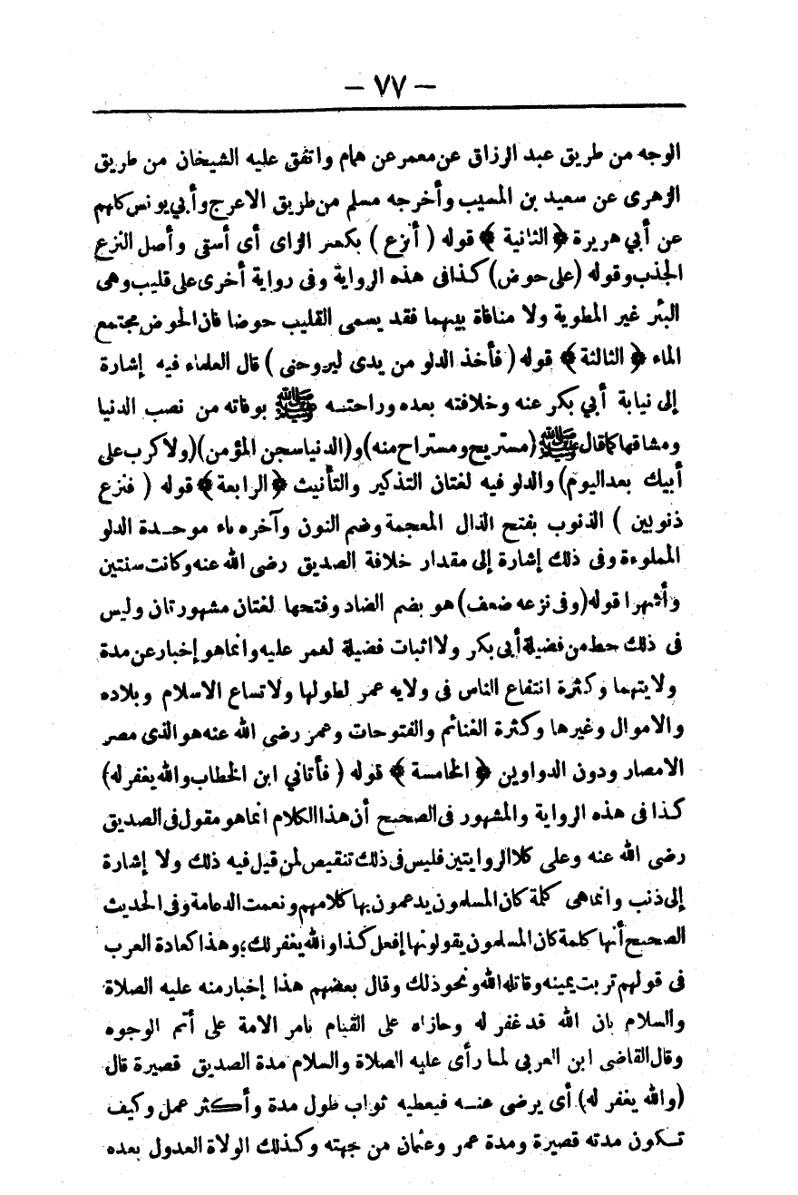(الْخَامِسَةُ) : قَوْلُهُ «فَأَتَانِي ابْنُ الْخَطَّابِ وَاَللَّهُ يَغْفِرُ لَهُ:» كَذَا فِي هَذِهِ الرِّوَايَةِ وَالْمَشْهُورُ فِي الصَّحِيحِ أَنَّ هَذَا الْكَلَامَ إنَّمَا هُوَ مَقُولٌ فِي الصِّدِّيقِ - رَضِيَ اللَّهُ عَنْهُ - وَعَلَى كِلَا الرِّوَايَتَيْنِ فَلَيْسَ فِي ذَلِكَ تَنْقِيصٌ لِمَنْ قِيلَ فِيهِ ذَلِكَ، وَلَا إشَارَةٌ إلَى ذَنْبٍ وَإِنَّمَا هِيَ كَلِمَةٌ كَانَ الْمُسْلِمُونَ يُدَعِّمُونَ بِهَا كَلَامَهُمْ وَنِعْمَتْ الدِّعَامَةُ وَفِي الْحَدِيثِ الصَّحِيحِ أَنَّهَا كَلِمَةٌ كَانَ الْمُسْلِمُونَ يَقُولُونَهَا افْعَلْ كَذَا وَاَللَّهُ يَغْفِرُ لَك؛ وَهَذَا كَعَادَةِ الْعَرَبِ فِي قَوْلِهِمْ تَرِبَتْ يَمِينُهُ وَقَاتَلَهُ اللَّهُ وَنَحْوُ ذَلِكَ وَقَالَ بَعْضُهُمْ هَذَا إخْبَارٌ مِنْهُ - عَلَيْهِ الصَّلَاةُ وَالسَّلَامُ - بِأَنَّ اللَّهَ قَدْ غَفَرَ لَهُ وَجَازَاهُ عَلَى الْقِيَامِ بِأَمْرِ الْأَمَةِ عَلَى أَتَمِّ الْوُجُوهِ وَقَالَ الْقَاضِي ابْنُ الْعَرَبِيِّ: لَمَّا رَأَى - عَلَيْهِ الصَّلَاةُ وَالسَّلَامُ - مُدَّةَ الصِّدِّيقِ قَصِيرَةً قَالَ «وَاَللَّهُ يَغْفِرُ لَهُ:» أَيْ يَرْضَى عَنْهُ فَيُعْطِيهِ ثَوَابَ طُولِ مُدَّةٍ وَأَكْثَرَ عَمَلٍ وَكَيْفَ تَكُونُ مُدَّتُهُ قَصِيرَةً وَمُدَّةُ عُمَرَ وَعُثْمَانَ مِنْ جِهَتِهِ وَكَذَلِكَ الْوُلَاةُ الْعُدُولُ بَعْدَهُ.