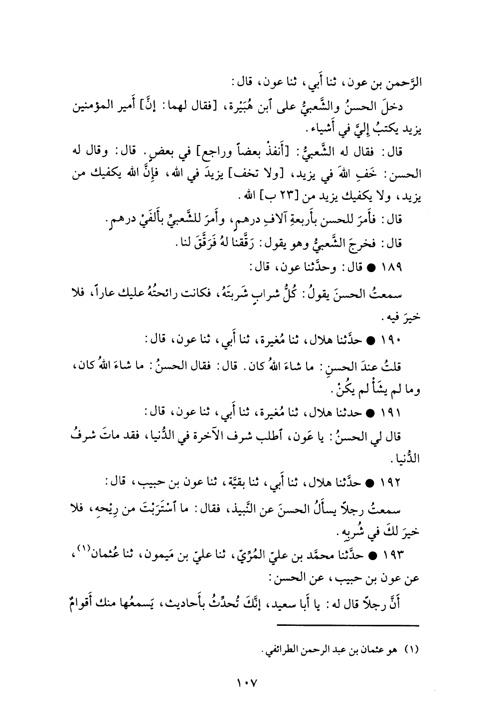 189- قال: وحدثنا عون، قال: سمعت الحسن يقول: كل شرابٍ شربته، فكانت رائحته عليك عاراً، فلا خير فيه.