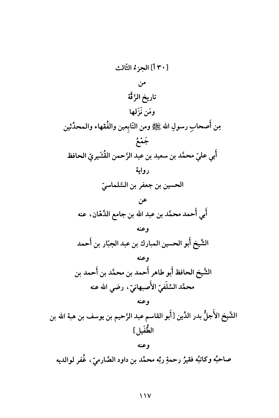 الجزء الثالث من تاريخ الرقة ومن نزلها من أصحاب رسول الله صلى الله عليه وسلم ومن التابعين والفقهاء والمحدثين