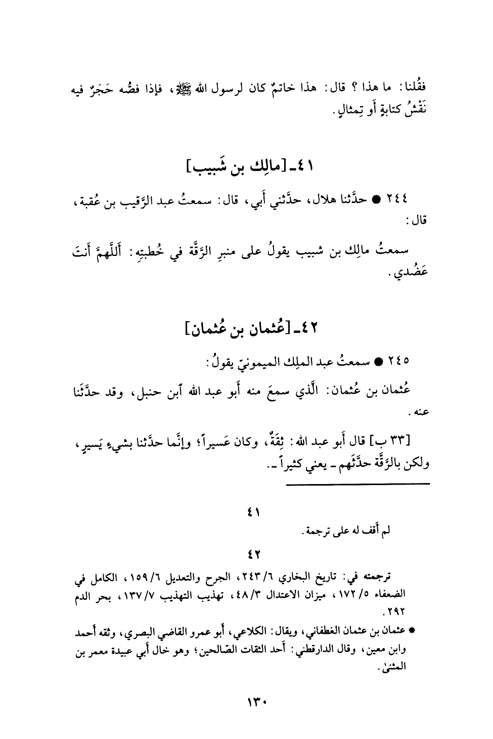 245- سمعت عبد الملك الميموني يقول: عثمان بن عثمان: الذي سمع منه أبو عبد الله ابن حنبل، وقد حدثنا عنه. قال أبو عبد الله: ثقةٌ، وكان عسيراً؛ وإنما حدثنا بشيءٍ يسيرٍ، ولكن بالرقة حدثهم -يعني كثيراً-.