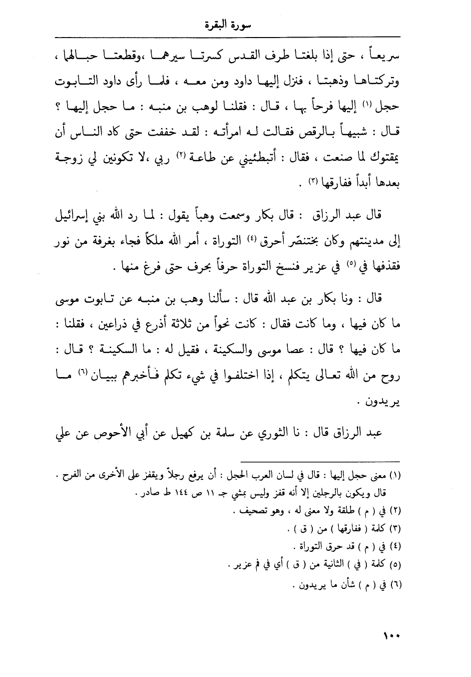 قال عبد الرزاق قال بكار وسمعت وهبا يقول لما رد الله بني إسرائيل إلى مدينتهم وكان بختنصر أحرق التوراه أمر الله ملكا فجاء بغرفة من نور فقذفها في فيعزير فنسخ التوراة حرفا بحرف حتى فرغ منها