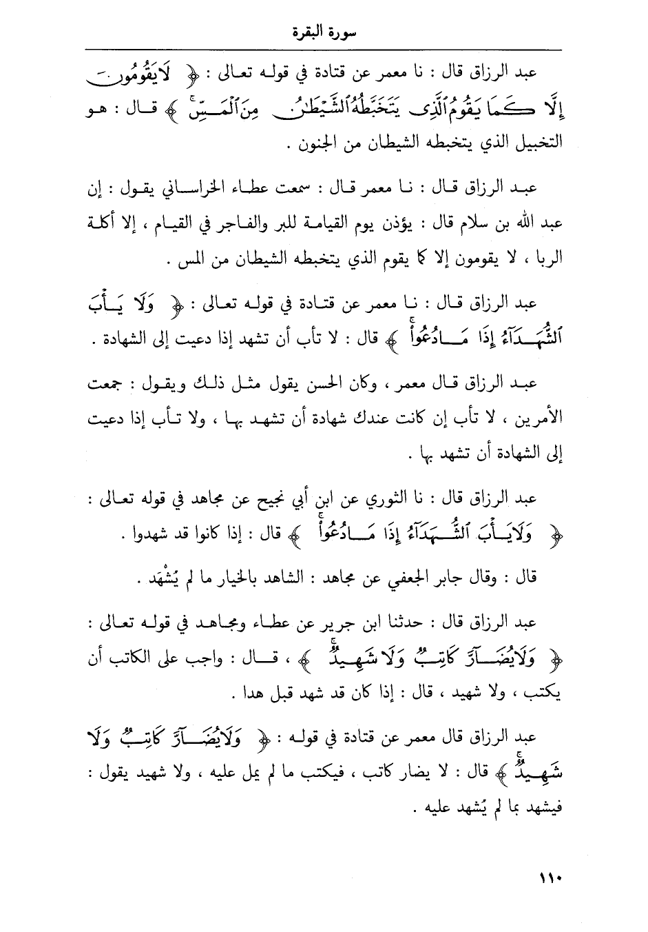 عبد الرزاق قال نا معمر عن قتادة في قوله تعالى ولا يأب الشهداء إذا ما دعوا قال لا تأب أن تشهد إذا دعيت إلى الشهادة