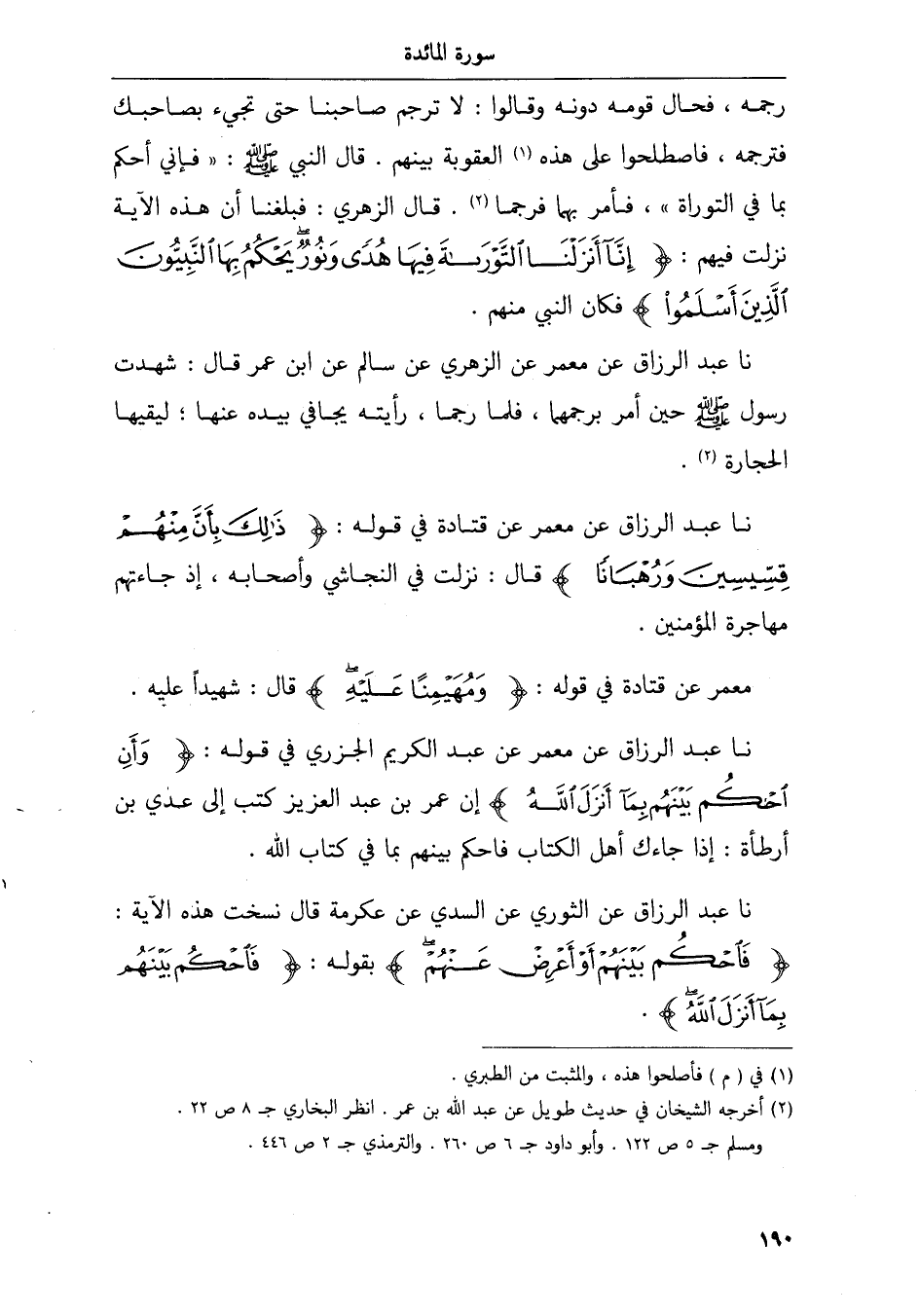 نا عبد الرزاق عن الثوري عن السدي عن عكرمة قال نسخت هذه الآية فاحكم بينهم أو أعرض عنهم بقوله فاحكم بينهم بما أنزل الله