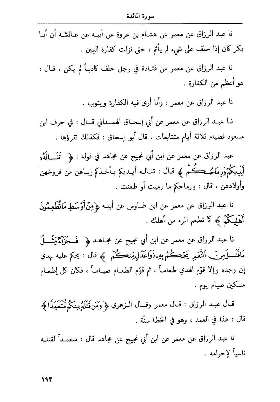 نا عبد الرزاق عن معمر وأنا أرى فيه الكفارة ويتوب