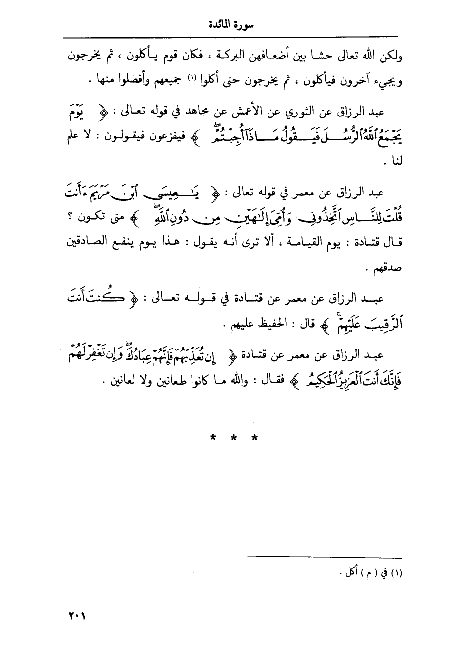 عبد الرزاق عن معمر في قوله تعالى يعيسى ابن امريم ءأنت قلت للناس اتخذوني وأمي إلهين ومن دون الله متى تكون قال قتادة يوم القيامة ألا ترى أنه يقول هذا يوم ينفع الصادقين صدقهم