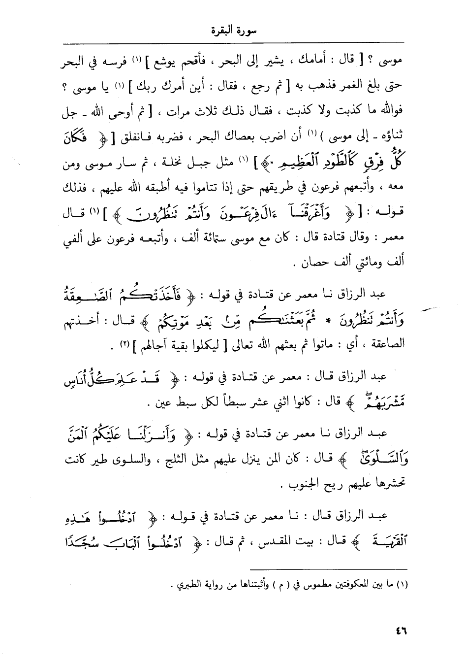 عبد الرزاق قال نا معمر عن قتادة في قوله ادخلوا هذه القرية قال بيت المقدس ثم قال ادخلوا الباب سجدا