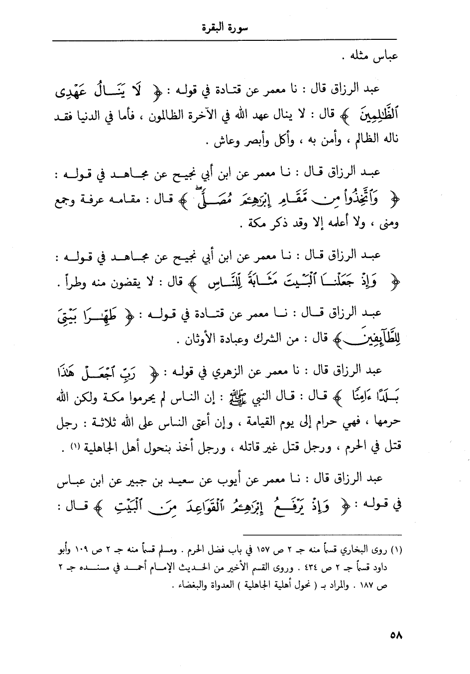 عبد الرزاق قال نا معمر عن قتاة في قوله طهرا بيتى للطآئفين قال من الشرك وعبادةالأوثان