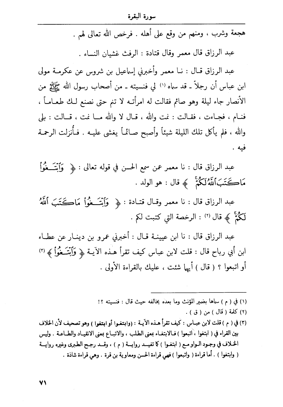عبد الرزاق قال نا معمر عمن سمع الحسن في قوله تعالى وابتغوا ما كتب الله لكم قال هو الولد