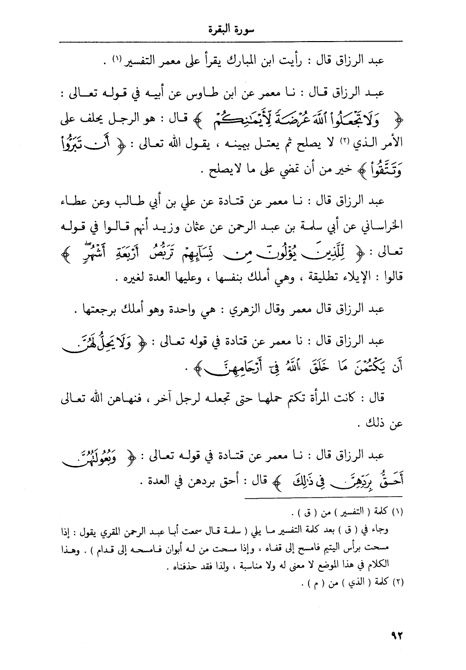 عبد الرزاق قال رأيت ابن المبارك يقرأ على معمر التفسير