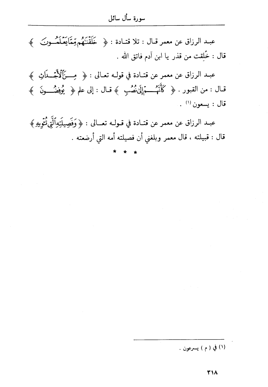 عبد الرزاق عن معمر عن قتادة في قوله تعالى غيبت الجب قال بئر بيت المقدس بئر في بعض نواحيها
