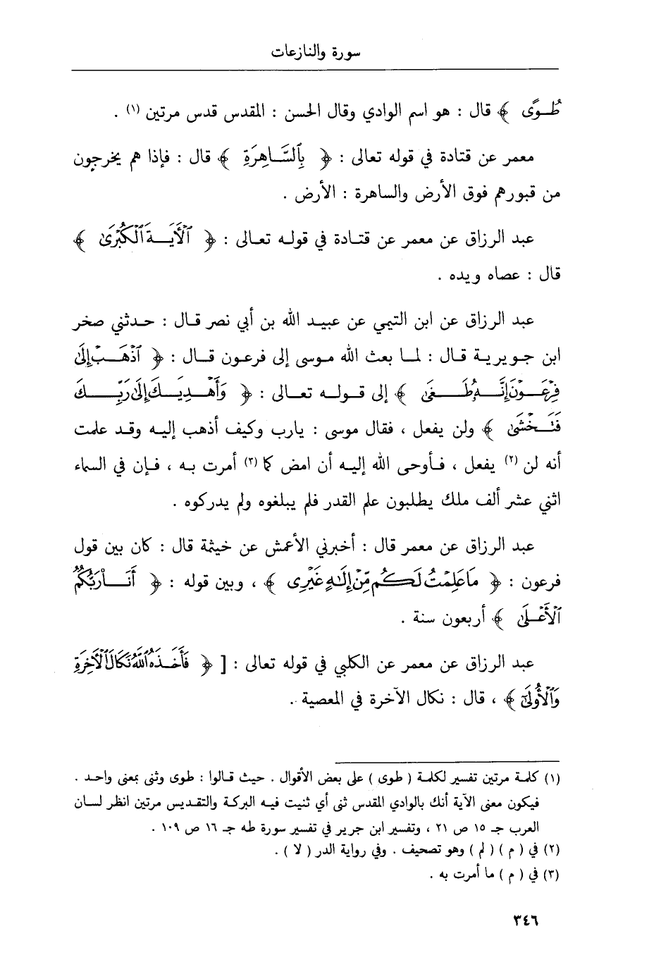 عبد الرزاق عن معمر عن قتادة في قوله تعالى من كل شيء موزون قال معلوم
