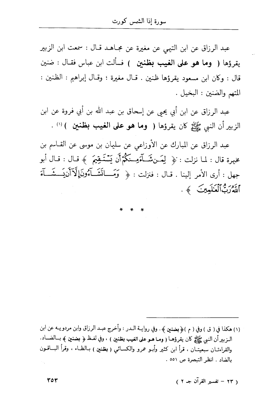 عبد الرزاق عن معمر عن قتادة في قوله تعالى لكم فيها جمال حين تريحون قال إذا راحت كأعظم ما تكون أسنمة وأحسن ما تكون ضروعا