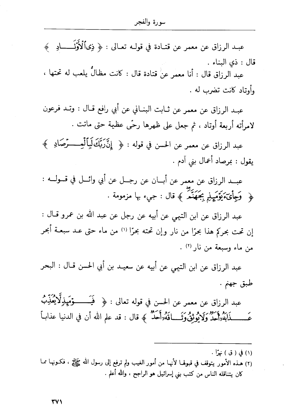 عبد الرزاق عن معمر عن الزهري عن أبي سلمة بن عبد الرحمن قال سمعت جابر بن عبد الله يقول قال رسول الله قمت في الحجر حين كذبني قومي ليلة أسري بي فأثنيت على ربي وسألته أن يمثل لي بيت المقدس فرفع لي فجعلت أنعت لهم آياته