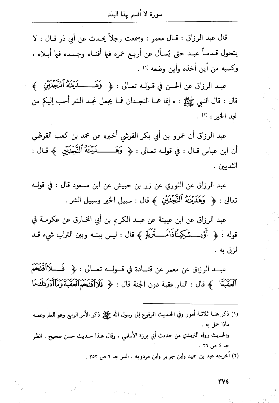عبد الرزاق عن معمر عن قتادة في قوله تعالى وكل إنسن ألزمنه طئره في عنقه قال عمله ويخرج ذلك العمل كتابا يلقاه منشورا قال معمر وقال الحسن طائره عمله شقاوة أو سعادة