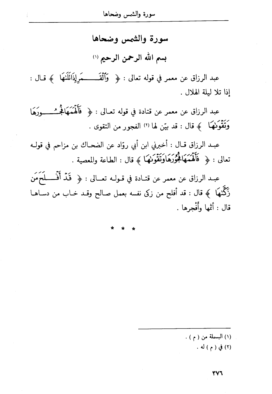 عبد الرزاق عن الثوري عن منصور عن مجاهد قال الأواب الذي يذكر ذنوبه في الخلاء فيستغفر الله منها