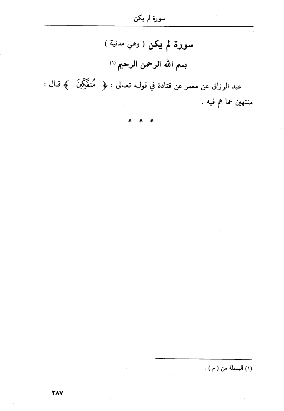 عبد الرزاق قال الثوري ومعمر عن أبي إسحاق عن صلة بن زفر قال سمعت حذيفة يقول عسى أن يبعثك ربك مقاما محمودا قال يجمع الله الناس في صعيد واحد حيث يسمعهم الداعي وينفذهم البصر حفاة عراة كما خلقوا سكوتا لا تكلم نفس إلا بإذنه فينادي محمد فيقول لبيك وسعديك والخير في يديك والشر ليس إليك والمهدي من هديت وعبدك بين يديك وبك وإليك لا ملجأ ولا منجا منك إلا إليك تباركت ربنا وتعاليت سبحانك رب البيت قال فذلك المقام المحمود الذي ذكر الله عسى أن يبعثك ربك مقاما محمودا