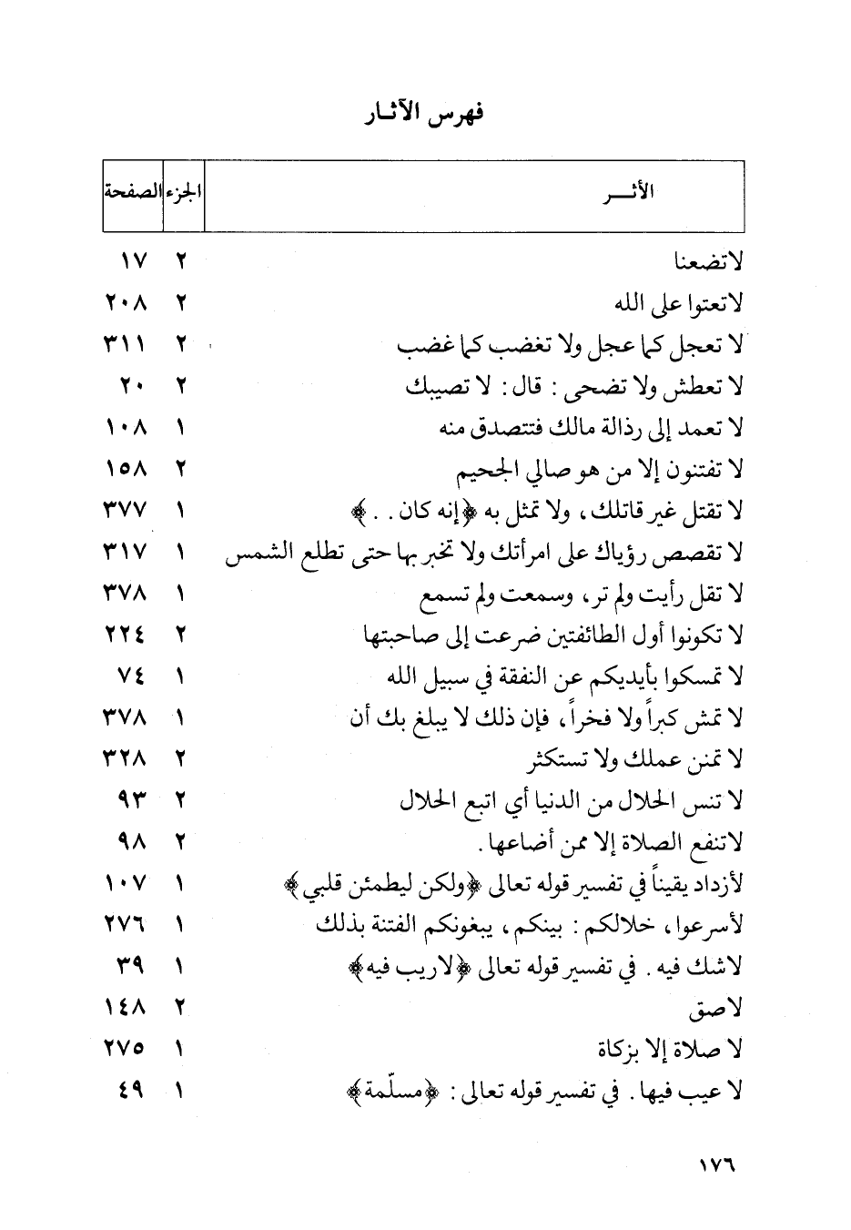عبد الرزاق عن معمر عن أبي إسحاق عن عاصم بن ضمرة قال تلا علي وسيق الذين اتقوا ربهم إلى الجنة زمرا قال حتى إذا جاءوها وجدوا عند باب الجنة شجرة يخرج من ساقها عينان فعمدوا إلى إحداهما كأنما أمروا بها فاغتسلوا فيها فلن تشعث رؤوسهم بعدها أبدا كأنما دهنوا بالدهان ثم عمدوا إلى الأخرى فشربوا منها فطهرت أجوافهم وغسلت كل قذر فيهم وتتلقاهم الملائكة على باب الجنة سلام عليكم طبتم فادخلوها خالدين وتتلقاهم الولدان يطيفون بهم كما يطيف ولدان أهل الدنيا بالحميم يجيء من الغيبة يقولون أبشر أعد الله لك كذا وكذا ثم يذهب الغلام منهم إلى الزوجة من أزواجه فيقول قد جاء فلان باسمه الذي كان يدعى في الدنيا فتقول أنت رأيته فيقول نعم فيستخفها الفرح حتى تقوم على أسكفة بابها ثم ترجع فيجيء فينظر إلى تأسيس بنيانه من جندل اللؤلؤ بين أحمر وأصفر وأخضر من كل لون ثم يجلس فينظر فإذا زرابي مبثوثة ونمارق مصفوفة وأكواب موضوعة ثم يرفع رأسه فينظر إلى سقف بنيانه فلولا أن الله قدر ذلك له لألم أن يذهب بصره إنما هو مثل البرق فيقول الحمد لله الذي هدانا لهذا وما كنا لنهتدي لولا أن هدانا الله