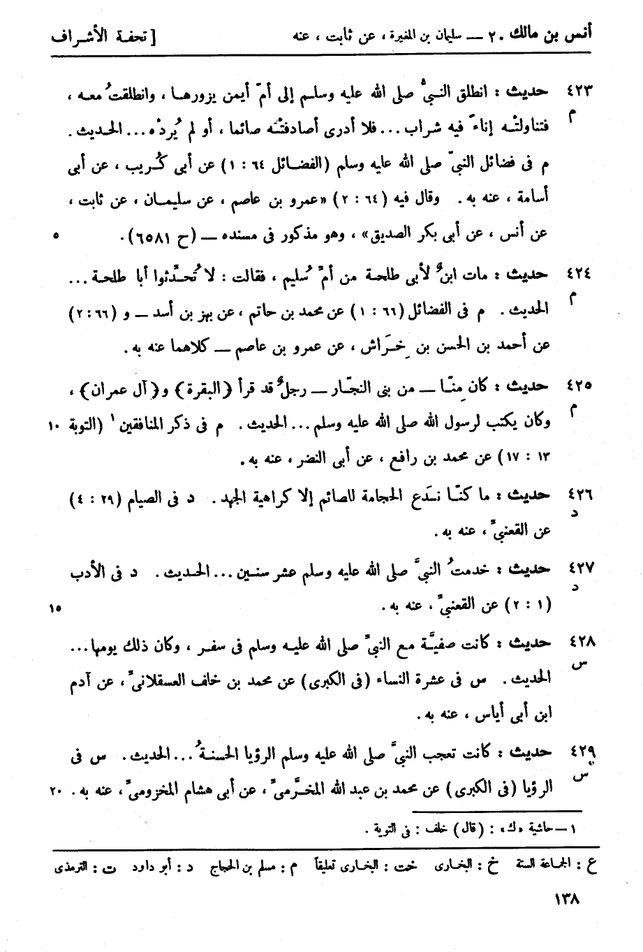 م في فضائل النبيّ صَلَّى اللَّهُ عَلَيْهِ وَسَلَّمَ (الفضائل 64: 1) عن أبي كُريب عن أبي أسامة عنه به. وقال فيه (64: 2) عمرو بن عاصم عن سليمان عن ثابت عن أنس عن أبي بكر الصديق وهو مذكور في مسنده (ح 6581)