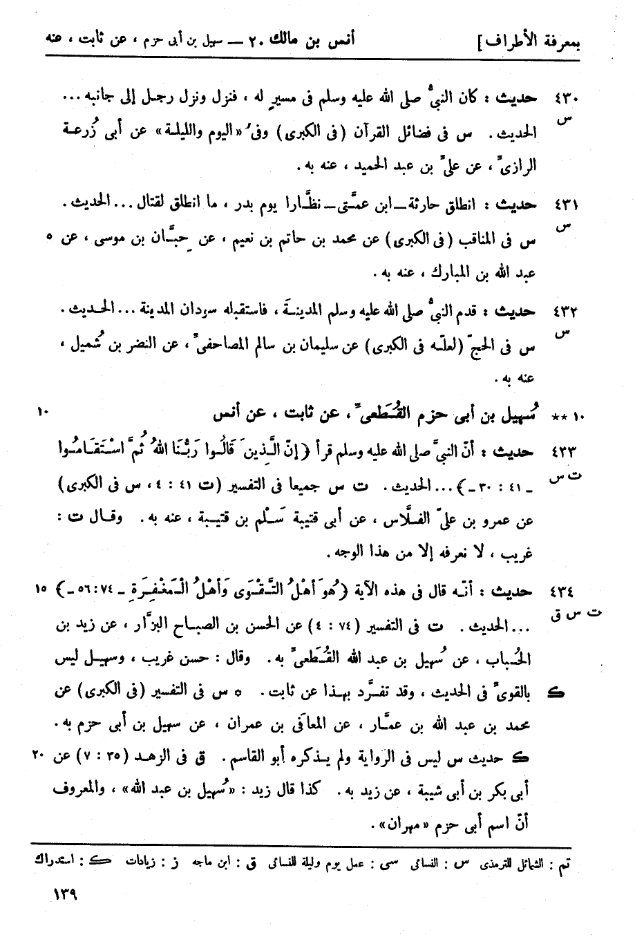 س في المناقب (في الكبرى) عن محمد بن حاتم بن نعيم عن حِبَّان بن موسى عن عبد الله بن المبارك عنه به