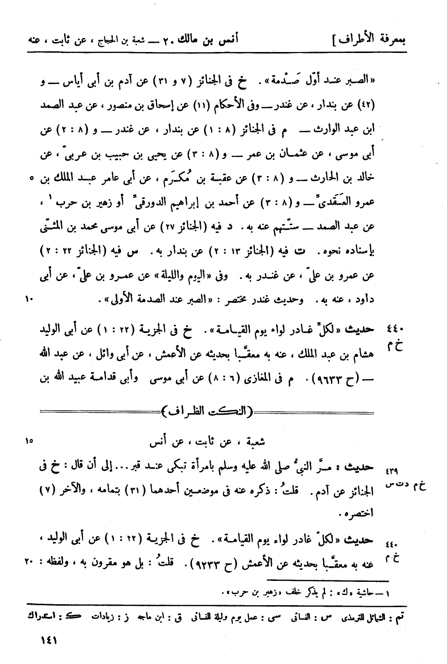 440 -[خ م] حديث لكلِّ غادر لواء يوم القيامة (خ) في الجزية (22: 1) عن أبي الوليد هشام بن عبد الملك عنه به. معقَّباً بحديثه عن الأعمش عن أبي وائل عن عبد الله (ح 9633)