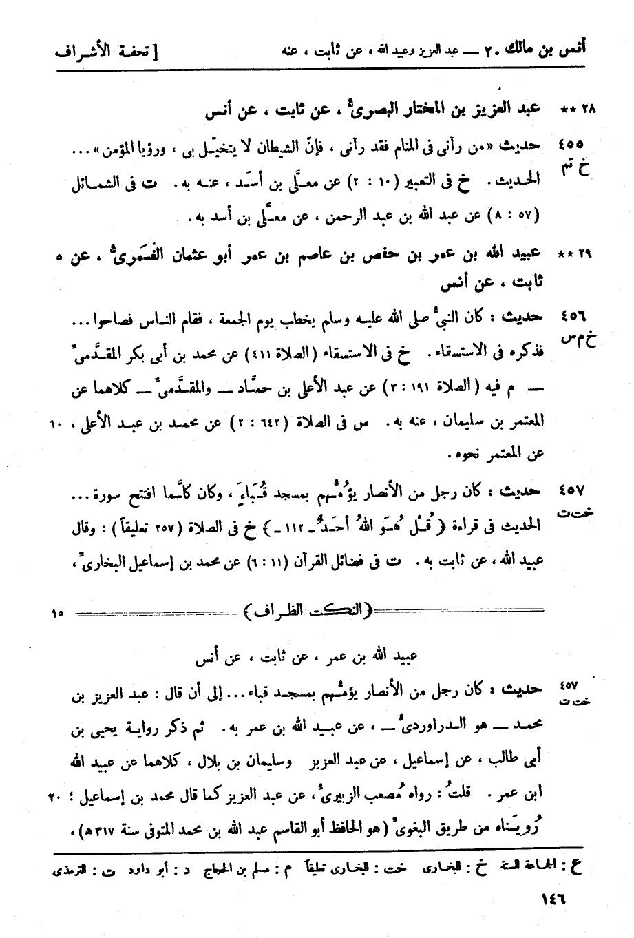 ت في فضائل القرآن (11: 6) عن محمد بن إسماعيل البخاريِّ -[147]- عن إسماعيل بن أبي أويس عن عبد العزيز بن محمد عنه به. وقال حسن غريب من حديث عبيد الله (ز) رواه يحيى بن أبي طالب عن إسماعيل بن أبي أويس عن عبد العزيز بن محمد وسليمان بن بلال كلاهما عن عبيد الله بن عمر
