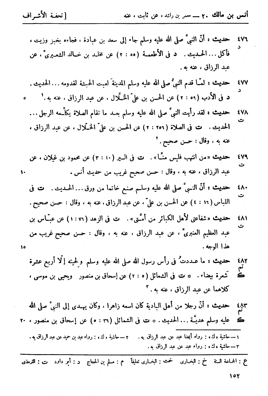 ت في الشمائل (5: 2) عن إسحاق بن منصور ويحيى بن موسى كلاهما عن عبد الرزاق عنه به. 3