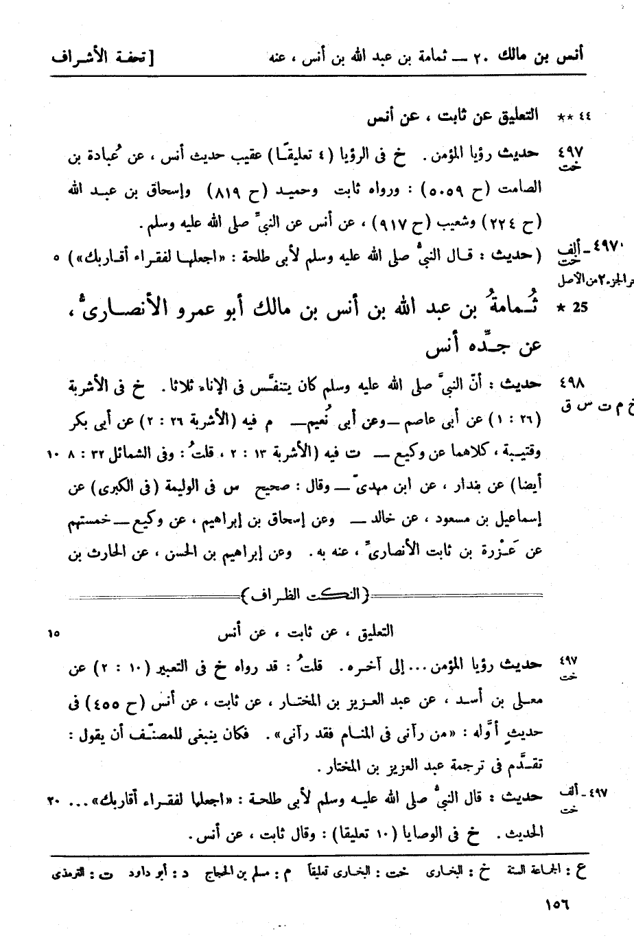 497 -[خت] حديث رؤيا المؤمن (خ) في الرؤيا (4 تعليقاً) عقيب حديث أنس عن عُبادة بن الصامت (ح 5059) ورواه ثابت وحميد (ح 819) وإسحاق بن عبد الله (ح 224) وشعيب (ح 917) عن أنس عن النبيّ صَلَّى اللَّهُ عَلَيْهِ وَسَلَّمَ