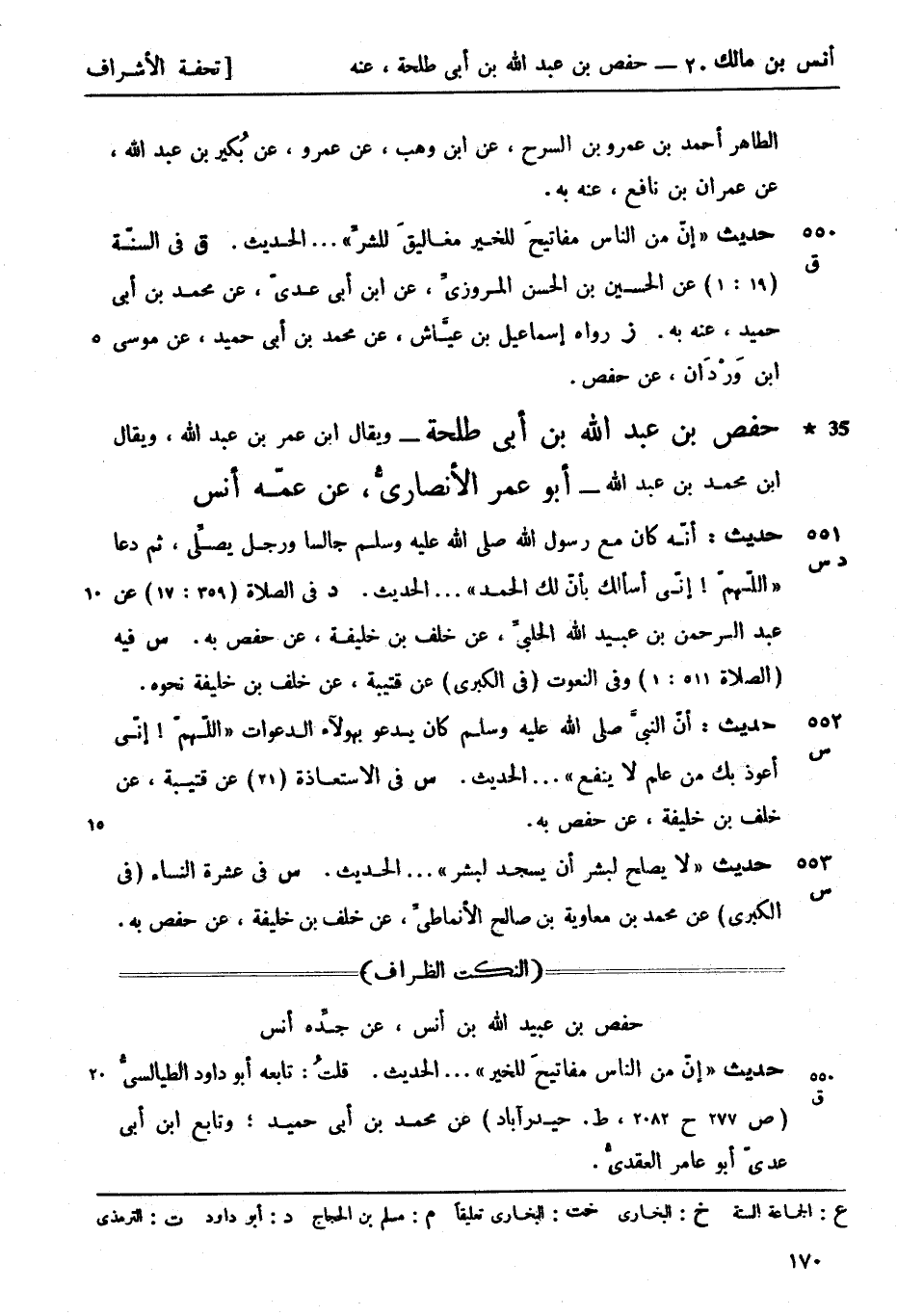 س فيه (الصلاة 511: 1) وفي النعوت (في الكبرى) عن قتيبة، عن خلف بن خليفة نحوه.