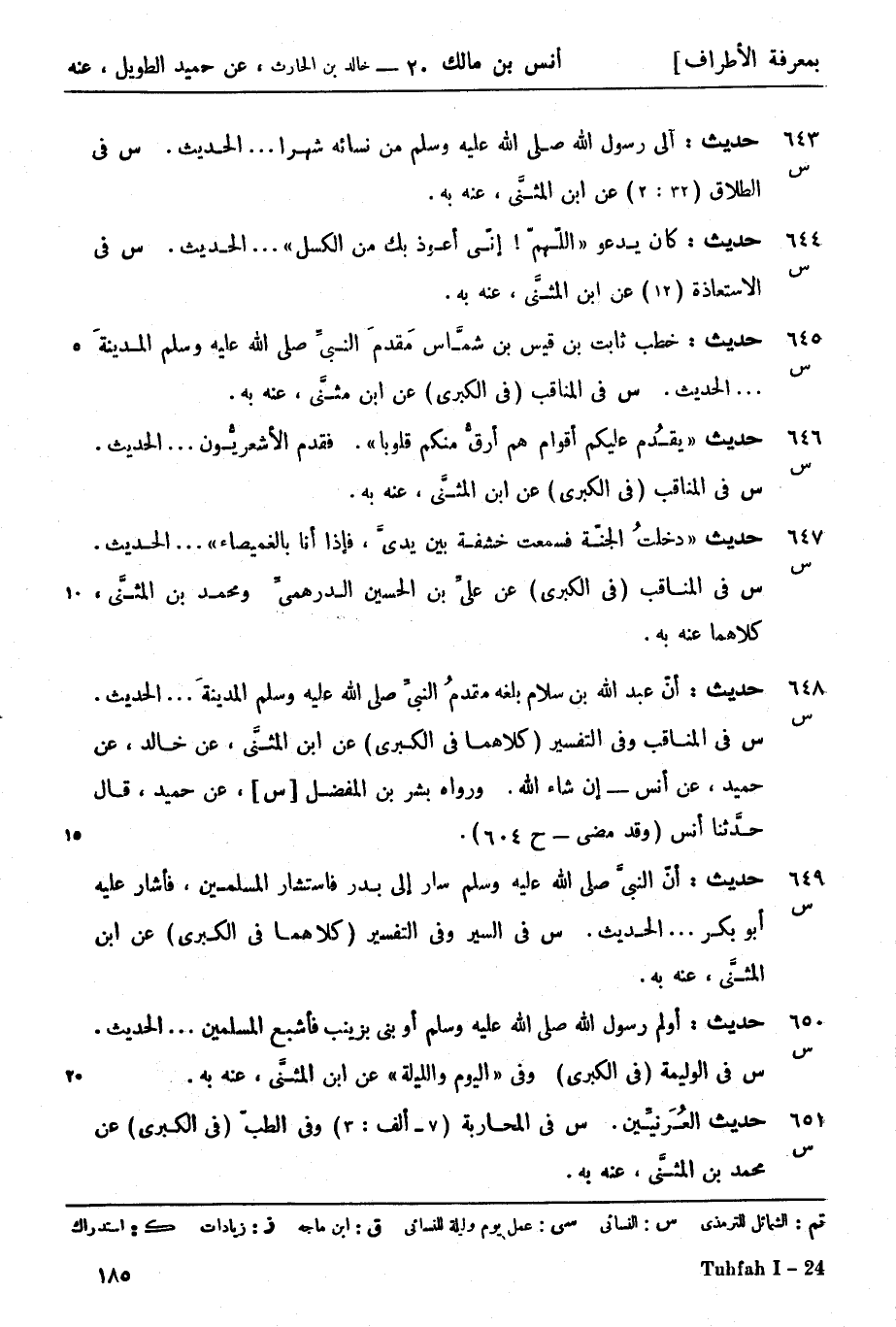 651 -[س] حديث العُرَنيِّين. (س) في المحاربة (7 - ألف: 3) وفي الطبّ (في الكبرى) عن محمد بن المثنَّى، عنه به.