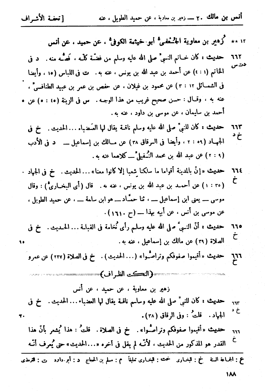 خ في الجهاد (35: 1) عن أحمد بن عبد الله بن يونس، عنه به. قال (أي البخاريُّ) : وقال موسى - يعني ابن إسماعيل - ثنا حمَّاد - هو ابن سلمة - عن حميد الطويل، عن موسى بن أنس، عن أبيه بهذا - (ح 1610) .