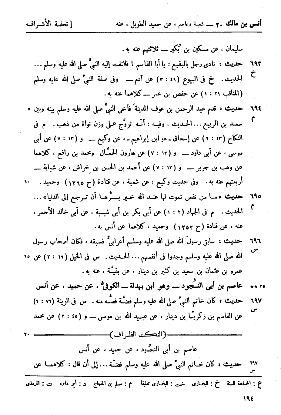 م في النكاح (13: 6) عن إسحاق هو - ابن إبراهيم - عن وكيع - و (13: 7) عن أبي موسى عن أبي داود - و (13: 7) عن هارون الحمَّال ومحمد بن رافع كلاهما عن وهب بن جرير - و (13: 7) عن أحمد بن الحسن بن خِراش عن شبابة - أربعتهم عنه به. وفي حديث وكيع: عن شعبة عن قتادة (ح 1265) وحميد.