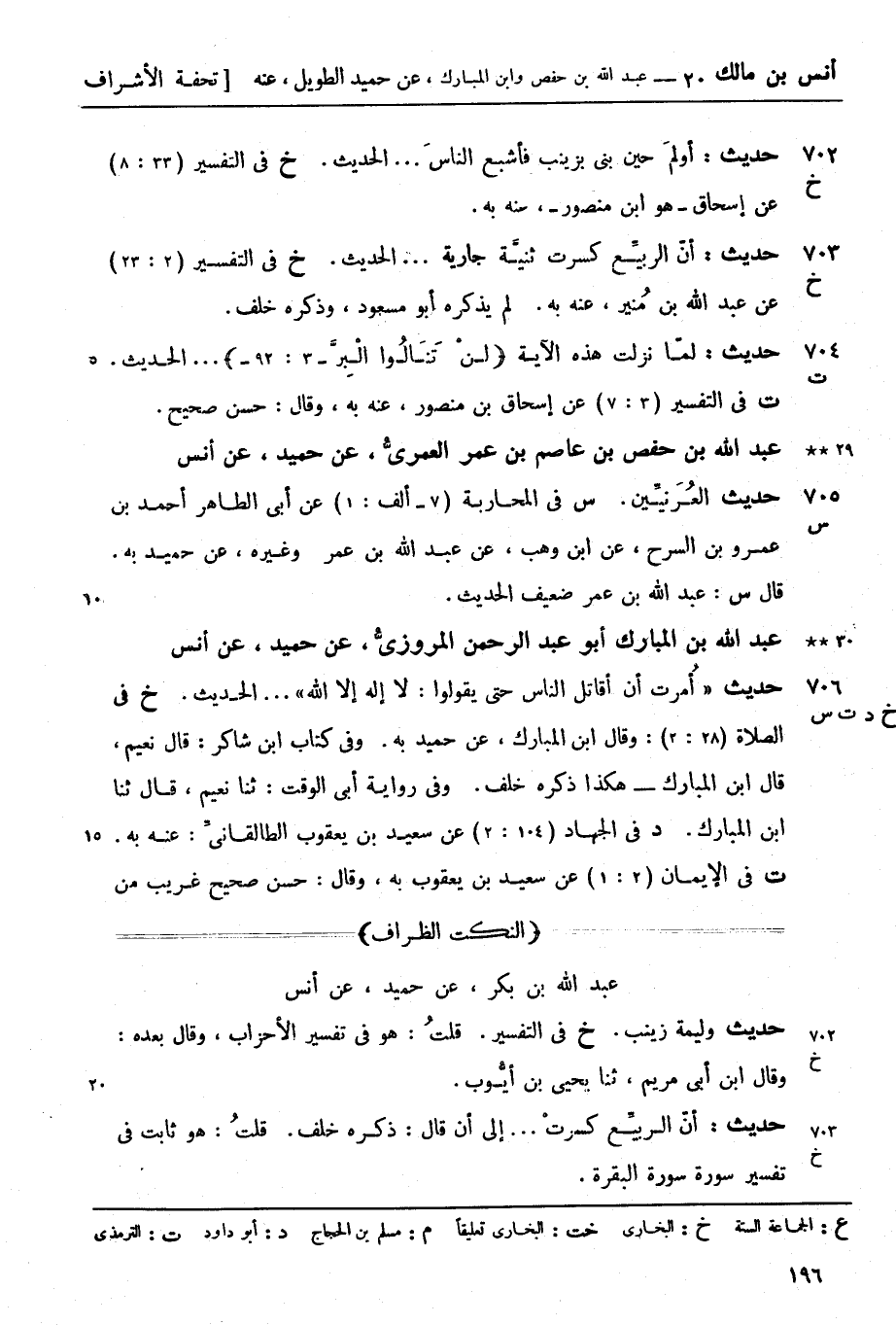 خ في الصلاة (28: 2) وقال: ابن المبارك عن حميد به. وفي كتاب ابن شاكر: قال نعيم، قال ابن المبارك - هكذا ذكره خلف. وفي رواية أبي الوقت: ثنا نعيم، قال ثنا ابن المبارك.