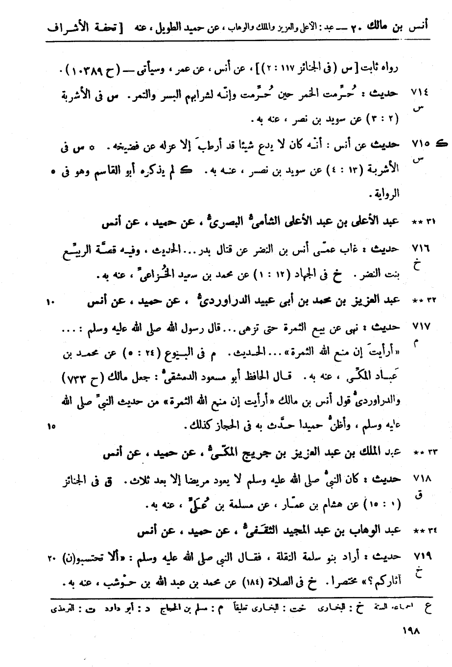 719 -[خ] حديث: أراد بنو سلمة النقلة، فقال النبيّ صَلَّى اللَّهُ عَلَيْهِ وَسَلَّمَ: ألا تحتسبو (ن) آثاركم مختصراً. (خ) في الصلاة (184) عن محمد بن عبد الله بن حوْشب، عنه به.