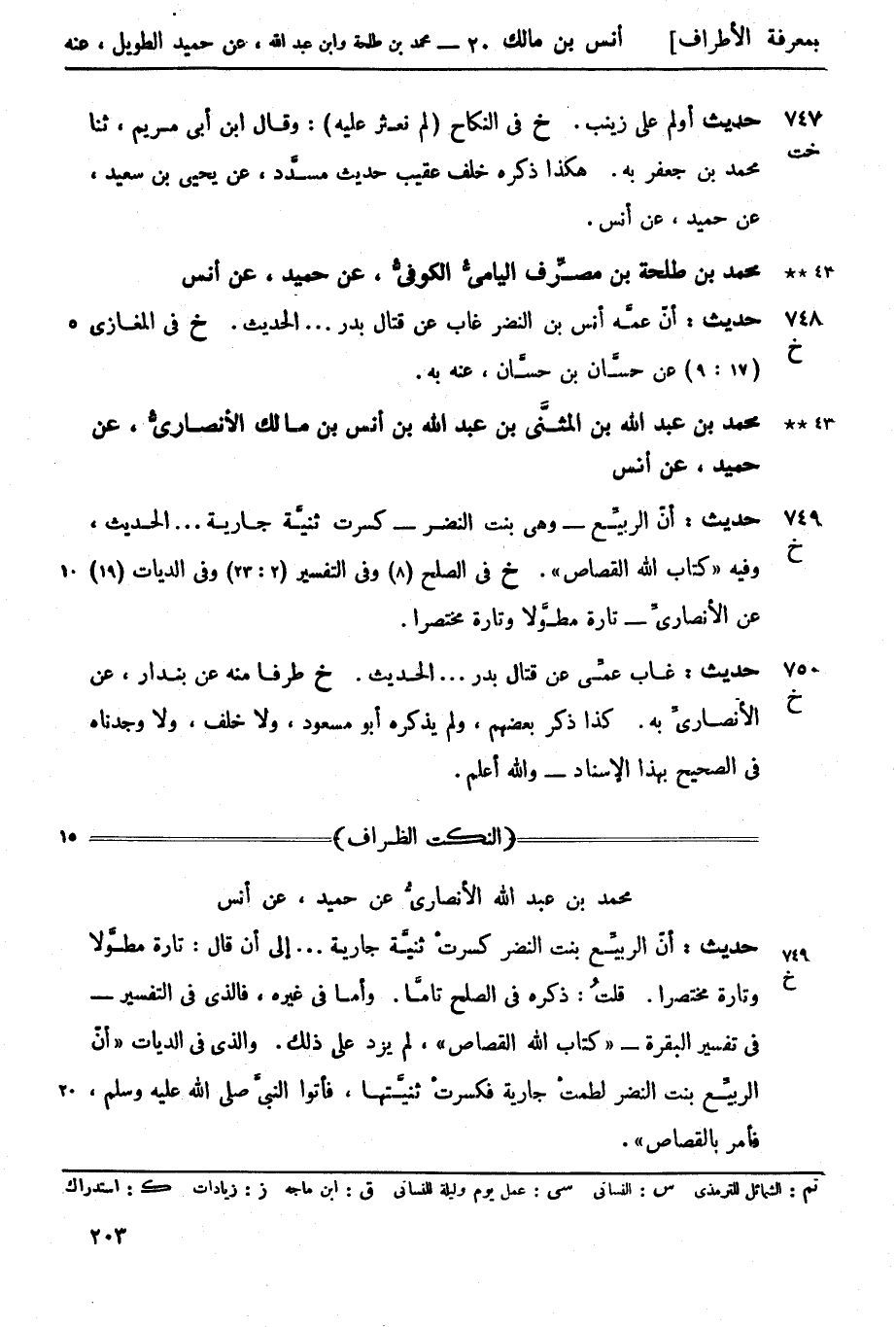 749 -[خ] حديث أنّ الربيِّع وهي بنت النضر كسرت ثنيَّة جارية.... الحديث وفيه كتاب الله القصاص