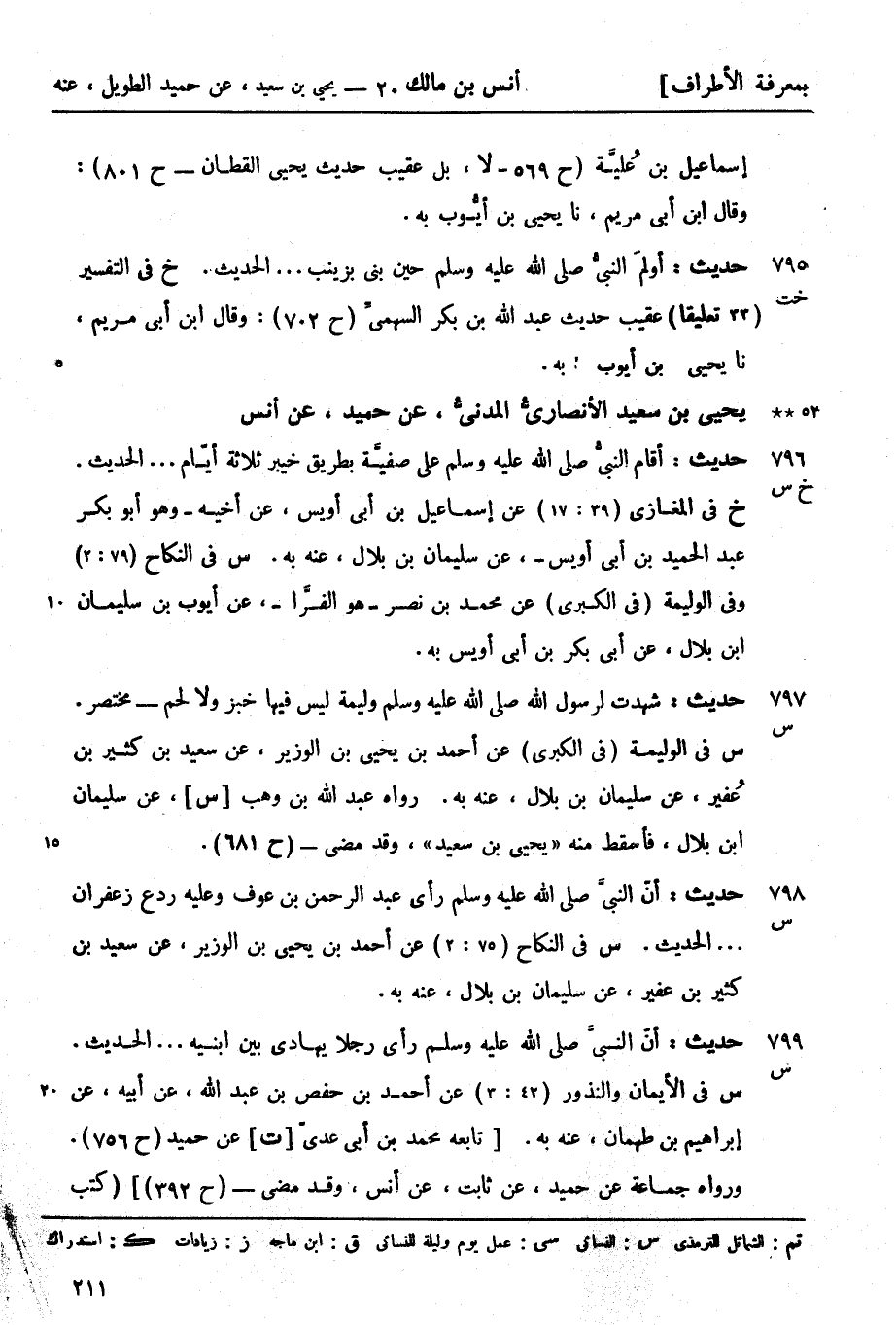 س في الأيمان والنذور (42: 3) عن أحمد بن حفص بن عبد الله عن أبيه عن إبراهيم بن طهمان عنه به. [تابعه محمد بن أبي عديّ] ت [عن حميد (ح 756) ورواه جماعة عن حميد عن ثابت عن أنس وقد مضى (ح 392) ] (كتب -[212]- على هامش ك عن العبارة التي بين المربَّعتين ليس هذا في نسخة ابن كثير)