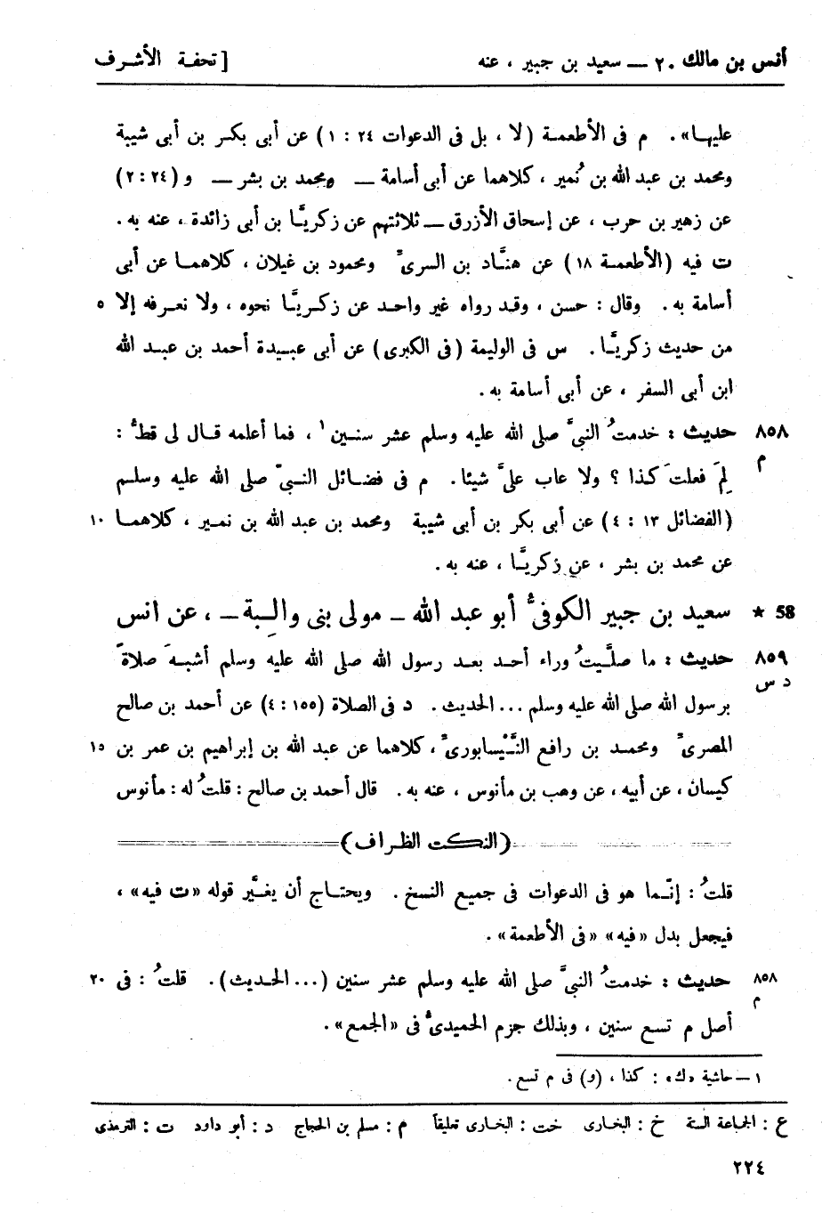 858 -[م] حديث خدمتُ النبيَّ صَلَّى اللَّهُ عَلَيْهِ وَسَلَّمَ عشر سنين 1 فما أعلمه قال لي قطُّ لِمَ فعلتَ كذا؟ ولا عاب عليَّ شيئاً. (م) في فضائل النبيّ صَلَّى اللَّهُ عَلَيْهِ وَسَلَّمَ (الفضائل 13: 4) عن أبي بكر بن أبي شيبة ومحمد بن عبد الله بن نمير كلاهما عن محمد بن بشر، عن زكريَّا، عنه به.